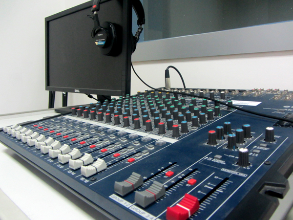 图-4 录音间调音台,用于《录音技术》、《广播电视新闻》等专业教学,同时供同学们进行后期配音创作