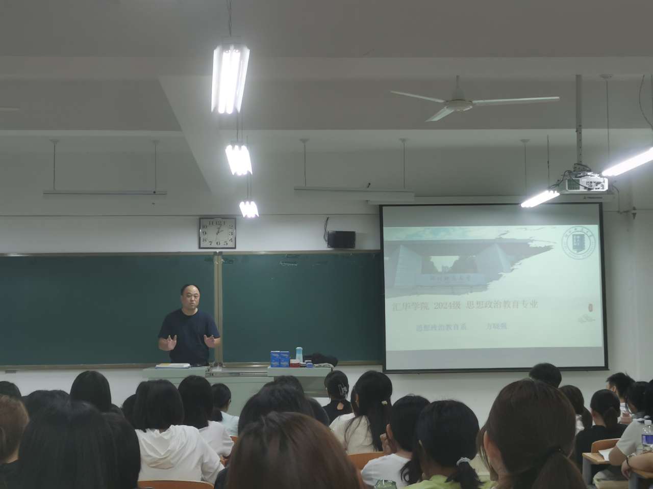 【入学教育】法政学部开展思想政治教育专业思想教育讲座-缩小 放大+ 2024-09-12为了帮助2024级新生更好地了解本专业,确立正确的学习目标,并对大学生活进行合理规划,9月4日下午,法政学部在第六教学楼304教室举行了思想政治教育专业专题讲座。本次讲座邀请MILE米乐集团马克思主义学院马克思主义理论系、思想政治教育系主任方晓强主讲,学部部长、教学副部长及2024级全体思想政治教育专业新生共同聆听。