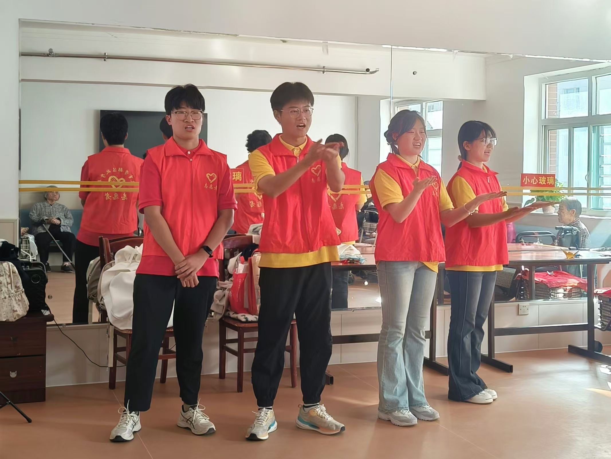 活动伊始,由志愿者们精心编排的手势舞《我和我的祖国》缓缓拉开序幕,随着音乐的起伏,志愿者们以手为笔,以心传情,深深触动了在场每一位老人的心弦;紧接着,一曲《最炫民族风》的合唱将气氛推向了高潮,让现场气氛变得热烈起来;电子琴独奏环节更是让人耳目一新;随后又接连演绎了《踏浪》、《送别》《歌唱祖国》等经典曲目,每一曲都饱含深情,让老人们沉浸在美好的回忆之中。表演结束,志愿者们还细心地教老人们学习折纸艺术,每一步都耐心讲解。折纸不仅锻炼了老人们的动手能力,更让他们的晚年生活增添了一份乐趣与成就感。最后,志愿者们陪伴爷爷奶奶聊天、下棋,倾听他们的故事和心声,同时,老人们还为志愿者们讲解了有关重阳节的传统习俗,大家相处的其乐融融。