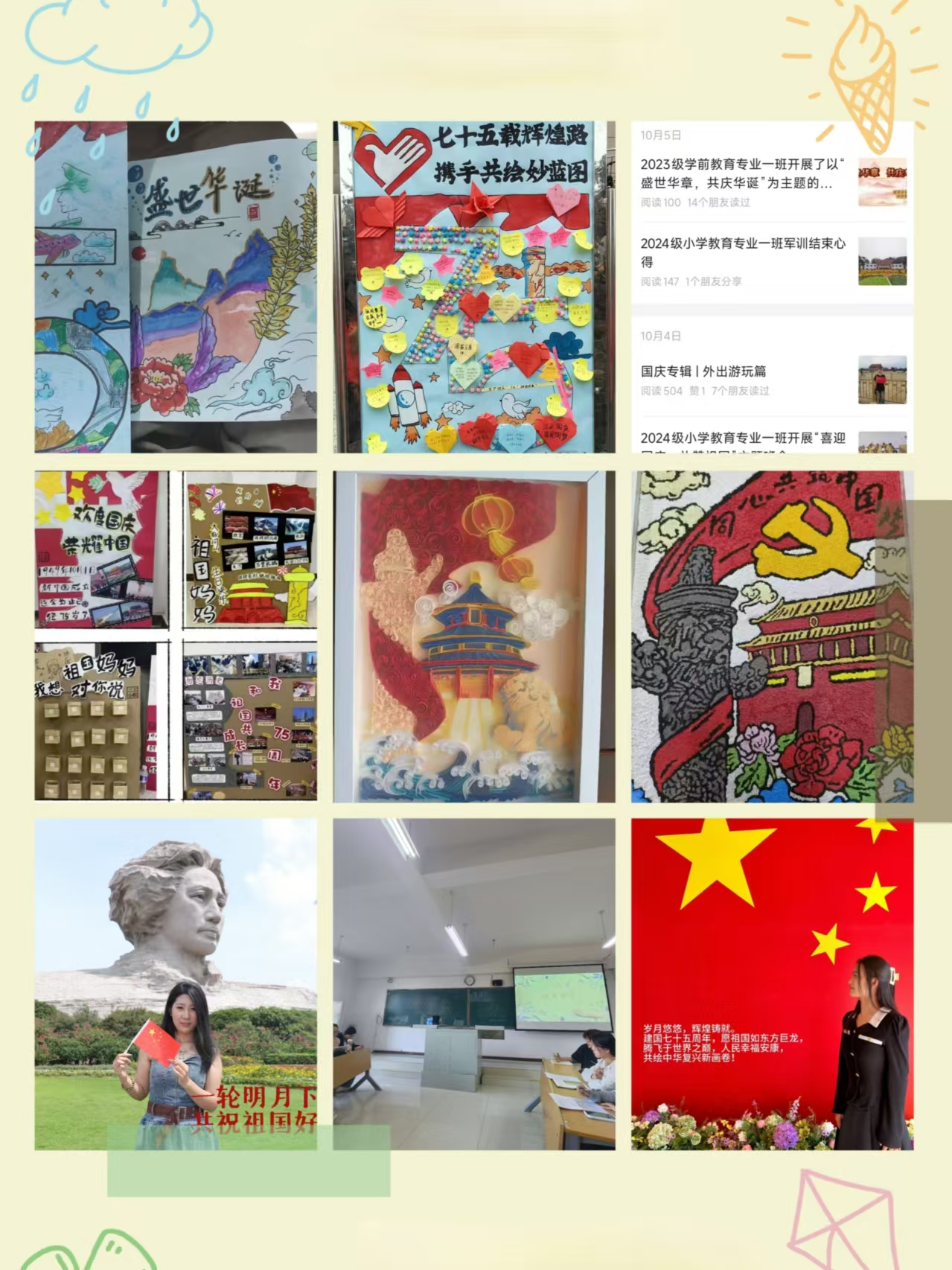 法政学部组织开展庆祝中华人民共和国成立75周年系列活动-缩小 放大+ 2024-10-17中华人民共和国成立75周年举国欢庆日,法政学部以传承红色基因,争做时代新人为主题,策划开展“庆国庆,赞祖国”系列活动,点亮学子爱国情怀,展现青春风采,共绘祖国繁荣画卷。 一、匠心筑梦,手工献礼燃爱国烈焰 法政学部匠心独运,组织“喜迎国庆,礼赞祖国”手工制作盛宴、“深情告白,礼赞国庆”佳节庆典,以及“创意飞扬,手工点亮”第二课堂活动。学生们以巧手织就爱国情怀,制作手工作品百余件,用自己的方式诠释红色基因之精髓,弘扬爱国主义精神之光辉。 二、共襄盛举,国庆庆典盛况空前 “七十五载辉煌路,携手共绘妙蓝图”知识问答活动吸引了超五百学子参与。活动通过精心设计的互动,融入了国家知识,激发了学生们的民族自豪感与认同感。 三、光影留痕,摄影大赛展爱国心声 学部举办“我和国旗合影”摄影大赛及“金秋礼赞,同庆华诞”MV拍摄活动,共征集作品八十余件。镜头下聚焦的是对祖国的深情厚谊,激发的是浓厚的爱国情感,凝聚的是国家向心力与凝聚力。 四、笔墨传情,宣传造势掀爱国热潮 学部借助新媒体公众号平台,发布迎国庆推文十六篇,总阅读量达两千余次。其中,《国庆专辑|外出游玩篇》、《国庆专辑|居家篇》及《2023级小学教育专业一班“喜迎国庆,礼赞祖国”手工制作纪实》等原创佳作备受瞩目。 五、书香润心,阅读分享共贺华章 学部举办“庆祝新中国成立75周年”读书分享会,学子们回望祖国辉煌历程,分享阅读感悟,探讨书籍真谛,推荐优质读物,共庆祖国华诞。 “江山如画,岁月如歌,七十五载辉煌史,共筑中华复兴梦”。一系列庆祝活动不仅营造了浓厚的节日氛围,更激发了广大学子深厚的爱国情怀与民族自豪感。展望未来,学部将继续依托专业特色举办更加丰富多彩的活动,为祖国的繁荣发展贡献新的力量与智慧。