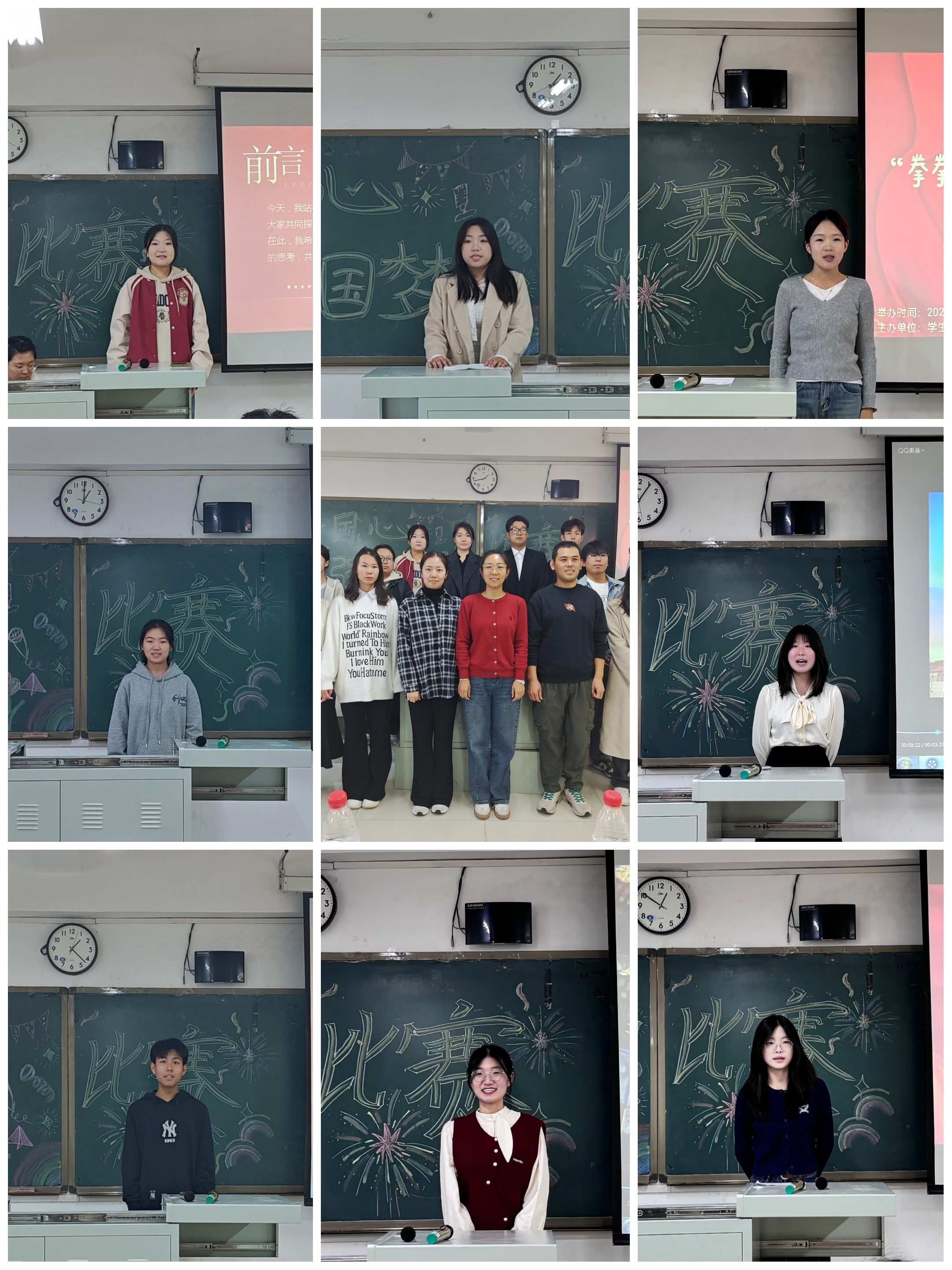 “拳拳爱国心,熠熠强国梦”演讲比赛圆满完成-缩小 放大+ 2024-10-2510月24日,由学部学生会举办的以“拳拳爱国心,熠熠强国梦”为主题的演讲比赛决赛在第六教学楼403教室进行,学部团总支书记张振伟、辅导员张星、梁昱,学生会主席团姜涛、潘璐雨担任此次活动评委。 此次比赛经过初赛选拔,共有13名优秀选手进入决赛。伴随着歌曲《国家》的演唱,演讲比赛决赛正式拉开序幕。李梦颖同学以“愿以吾辈之青春,捍卫盛世之中华”的铮铮誓言表达了为实现强国梦想而努力奋斗的信念和决心;赵心瑶同学从伟大先烈的英勇事迹表达了对祖国的崇敬之情,并结合当今国家形势展望中华民族伟大复兴的美好前景;乔靖斯、黄秋宇、王亚捷等同学爱国情怀融入到专业学习中,用独到的见解展现了教法学子为祖国贡献青春力量的决心。每位选手的演讲都各具特色,精彩纷呈,赢得评委和观众的阵阵掌声。最后,评委老师对选手们的表现进行了点评。老师对选手们展现出对党和国家的深刻认知与崇高敬意给予了充分的肯定,并就一些演讲细节提出了宝贵意见。经过精彩的演绎和角逐,王孜睿斩获一等奖、赵心瑶 闫爱嘉获得二等奖,武洋、王冉、范梦薇获得三等奖,其他7名同学获得优秀奖。 本次活动的开展是庆祝新中国成立75周年系列活动的重要组成部分,为学生们提供了一个展示自我和表达爱国情感的舞台,加深了同学们对党和国家发展历史的认识,有助于引导青年学生传承红色基因,加强爱国精神,激发迈进新征程、奋进新时代的豪情。