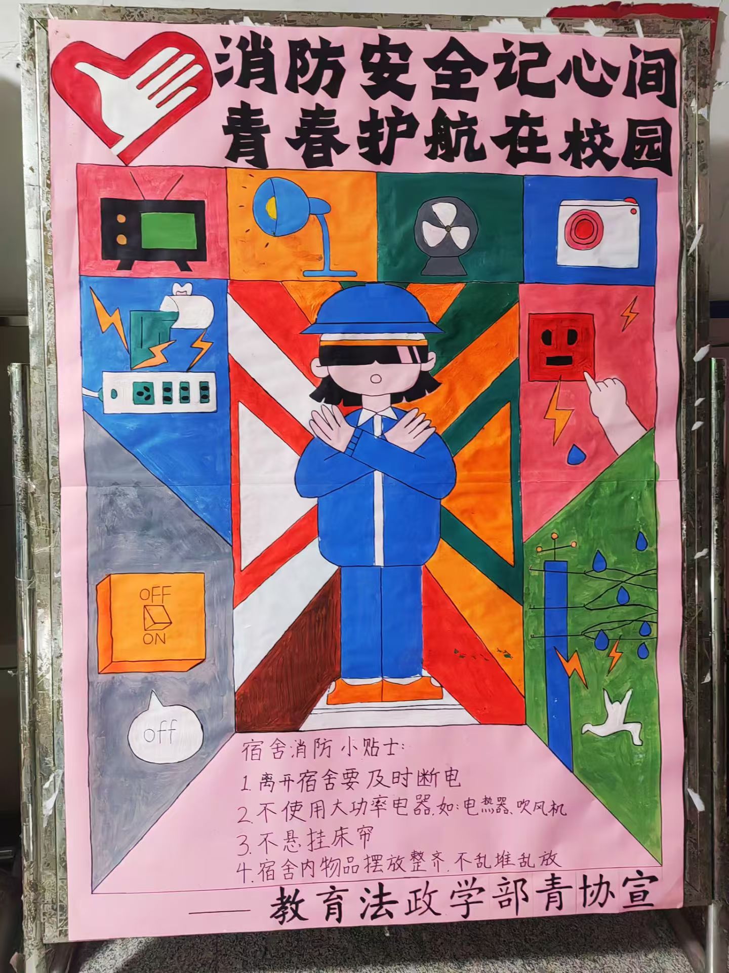养成安全习惯。学部将安全教育融入学生日常,构建安全生产“共同体”,筑牢安全生产“防护堤”。特别针对宿舍内使用违禁电器等安全隐患进行严格排查,并监督个别问题宿舍进行现场整改,督促学生养成随手断电的良好习惯。各班开展消防主题手抄报和消防安全标识作品征集及张贴活动。2024级小学教育1班消防安全手工制作活动,把消防安全与日常生活联系起来,在潜移默化中增强学生安全意识,助力学生养成安全习惯。 本次安全教育系列活动持续推进,学部将继续探索和创新安全教育模式,将更多实用性强、针对性高的教育内容融入日常教学和管理之中,建立健全校园安全长效机制,为师生营造一个更加安全、和谐的学习生活环境,为社会的持续稳定发展提供坚实的安全保障。