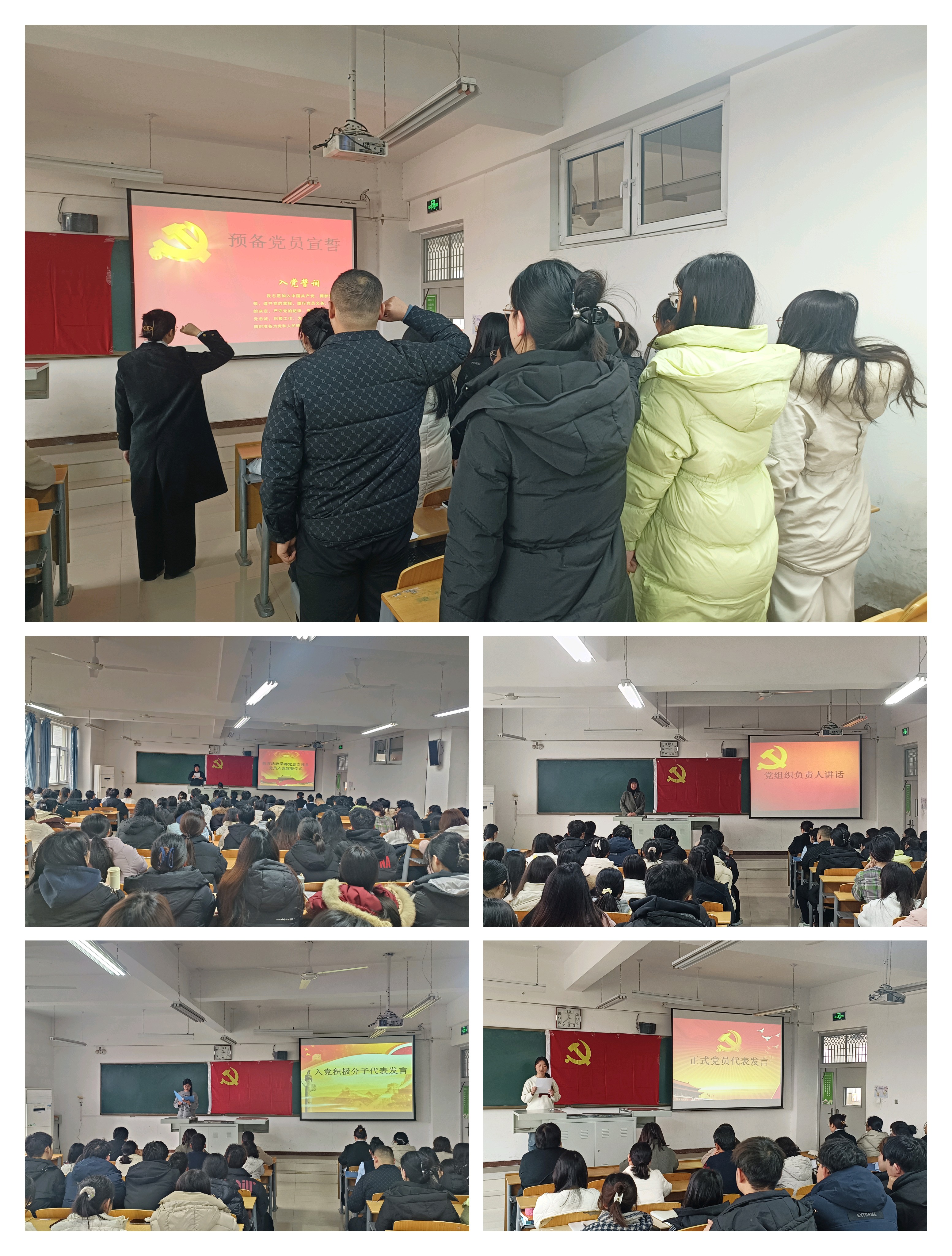 法政学部举行预备党员入党宣誓仪式暨支部党日活动汇报-缩小 放大+ 2024-12-1912月19日,法政学部党总支在第六教学楼304室举行了预备党员入党宣誓仪式。学部党总支委员、支部书记及全体学生党员、积极分子代表近百人参加了此次宣誓仪式。仪式由总支副书记、组织委员刘媛主持。 大会伊始,刘媛老师阐述了入党宣誓的重要意义。接着,全体起立奏唱雄壮激昂的《国际歌》,之后正式党员蔡长源同志带领15名新党员进行入党宣誓,宣誓过程庄严凝重,现场响起阵阵激昂的宣誓声,每个同学都用发自内心的声音抒发对党忠诚的决心,面对着党旗,大家接受了一次身心的特殊洗礼。预备党员代表张晨曦感谢的党组织的培养,表达了恪守在党旗下的诺言、对党忠诚、为党和人民尽职尽责、努力使自己成为一名优秀的共产党员的决心和信心。正式党员代表潘露雨以一个党员的身份讲述她对于入党的认识以及对新党员的几点要求和期望。从积极分子代表陈润佳的发言中,大家听出了积极分子向党组织靠拢的决心并为之付出的不懈努力。最后,学部党总支书记武新慧老师讲话,她强调,预备党员要牢记自身的党员身份,严格要求自己,以此次宣誓为契机,进一步坚定理想信念,强化责任担当,立足本职工作和学习,争做新时代合格党员,为实现中华民族伟大复兴的中国梦而不懈奋斗!