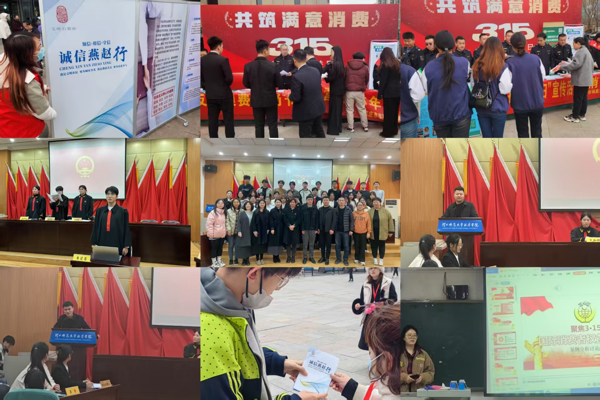 模拟法庭还原维权过程3月13日,2023级法学专业在图书馆一楼报告厅开展消费维权实战模拟法庭活动。北京市京悦(石家庄)律师事务所张艺柯律师、刘磊律师受邀到场进行专业指导,学部部长武新慧,副部长以及学部法学专业师生一百五十余人参加活动。模拟法庭以“王某诉某网红直播带货平台”一案为蓝本,采用“双场景递进式”设计,生动还原了消费者维权的全过程。活动开始,2023级法学专业同学以情景剧的形式将案件细节展现得淋漓尽致,从直播间虚假宣传到消费者上当受骗,再到线下维权,带领观众沉浸式体验了消费者维权的艰辛历程。随后,模拟法庭正式拉开帷幕,同学们完整展示了法庭调查、法庭辩论、最后陈述、当庭宣判等庭审环节。庭审过程中,“原告”据理力争,“被告”巧妙答辩,双方围绕“虚假宣传”、“产品质量”、“平台是否尽到审核责任”等诉讼争议焦点问题展开激烈交锋,为现场观众呈现了一场精彩纷呈的“庭审盛宴”。北京市京悦(石家庄)律师事务所的张艺柯律师与刘磊律师对同学们在庭审中的表现给予了高度肯定,同时结合自身丰富的法律实践经验指出质证环节中存在的不足,并提出了针对性改进建议,为同学们未来的学习和实践提供了宝贵的指导。最后,在主持人的引导下,全体参与者庄严地进行了消费者宣誓,强化了大家的责任意识,还将理论知识与实际行动紧密连接,使活动更具深度和参与感,显著提升了整体效果。 案例分析增强法律意识3月13日,法学社在校园内积极宣讲315维权知识,为学部低年级近200名学生带来了一场生动的消费者维权案例分析与宣传片展示活动。活动中,法学社成员通过剖析“网购陷阱”、“校园贷套路”、“兼职诈骗”等典型案例,结合《消费者权益保护法》和《民法典》相关条款,深入浅出地讲解了消费者的维权途径。互动环节中,学生们就“直播购物维权难”、“霸王条款应对”等问题踊跃提问,现场气氛热烈。这一活动不仅帮助学生了解了常见的消费陷阱,还提升了他们的法律意识和自我保护能力。 线上互动传播维权知识从3月10日至3月15日,法学社精心策划并举办了一场主题为“我的权益我守护”的线上消费者权益保护法知识竞赛活动。此次活动吸引了189名学生踊跃参与,参赛者展现出较高的法律知识水平,充分体现了学生们对消费者权益保护法的理解与重视。借助竞赛答题等多种形式,参与者不仅深化了对法律知识的理解,还增强了自身的权益保护意识。本次活动取得了良好的成效,受到了广泛的认可与赞誉,为普法教育的进一步推广奠定了坚实的基础。校外实践助力消费环境为进一步拓展活动的社会影响,法学社积极参与开展校外宣传与实践活动。3月14日上午,法学社组织志愿者前往石家庄裕华区万达广场,协助市场监管部门开展“假冒伪劣产品销毁展示”活动,并向市民讲解如何通过包装标识、防伪二维码等辨别商品真伪。此外,志愿者们还通过知识普及、商户走访等形式,助力营造安全、诚信的消费环境,彰显了青年学子的社会责任担当。 此次“3·15消费者权益日”主题活动形式多样、内容丰富,通过案例分析、模拟法庭、线上互动和校外实践等多种方式,增强了大学生的消费维权意识,提升了防范诈骗能力,为构建安全和谐的校园消费环境奠定了基础。未来,学部将继续开展类似的活动,引导更多学生在实践中学习,在学习中成长,共同为营造安全放心的消费环境而努力。 阅读次数:5298