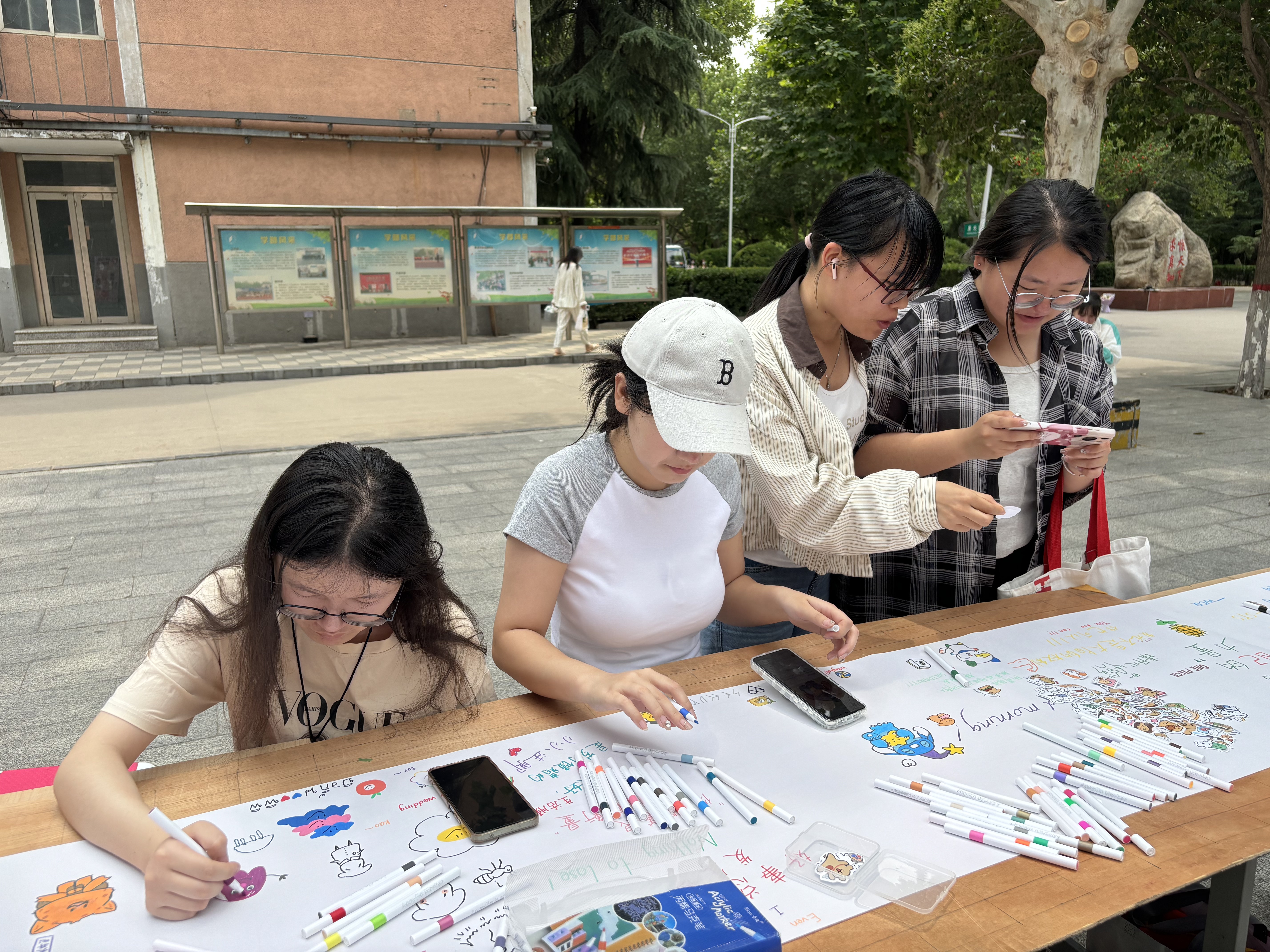 涂鸦心灵色彩,拥抱健康未来-缩小 放大+ 2025-05-26为了普及心理健康知识,帮助大学生理解和接纳情绪,树立正确心理健康观念。5月25日中午,教育法政学部青年志愿者协会在食堂东广场成功举办“涂鸦心灵色彩,拥抱健康未来”志愿活动。 活动当日,现场活动氛围轻松自由。在 “笔尖共绘晴空” 环节,志愿者提前精心准备好画布、彩笔等工具,鼓励参与者将抽象的心理感受转化为具象画面,通过色彩释放压力,缓解焦虑。“展板启明心窗” 环节同样精彩。志愿者围绕 “心理健康” 核心,广泛收集资料,精心设计制作主题展牌。展牌内容丰富,涵盖常见心理困扰及应对方法等知识。同时,志愿者热情地向过往同学介绍展牌内容,普及心理健康知识,帮助大家消除对心理问题的偏见与误解。