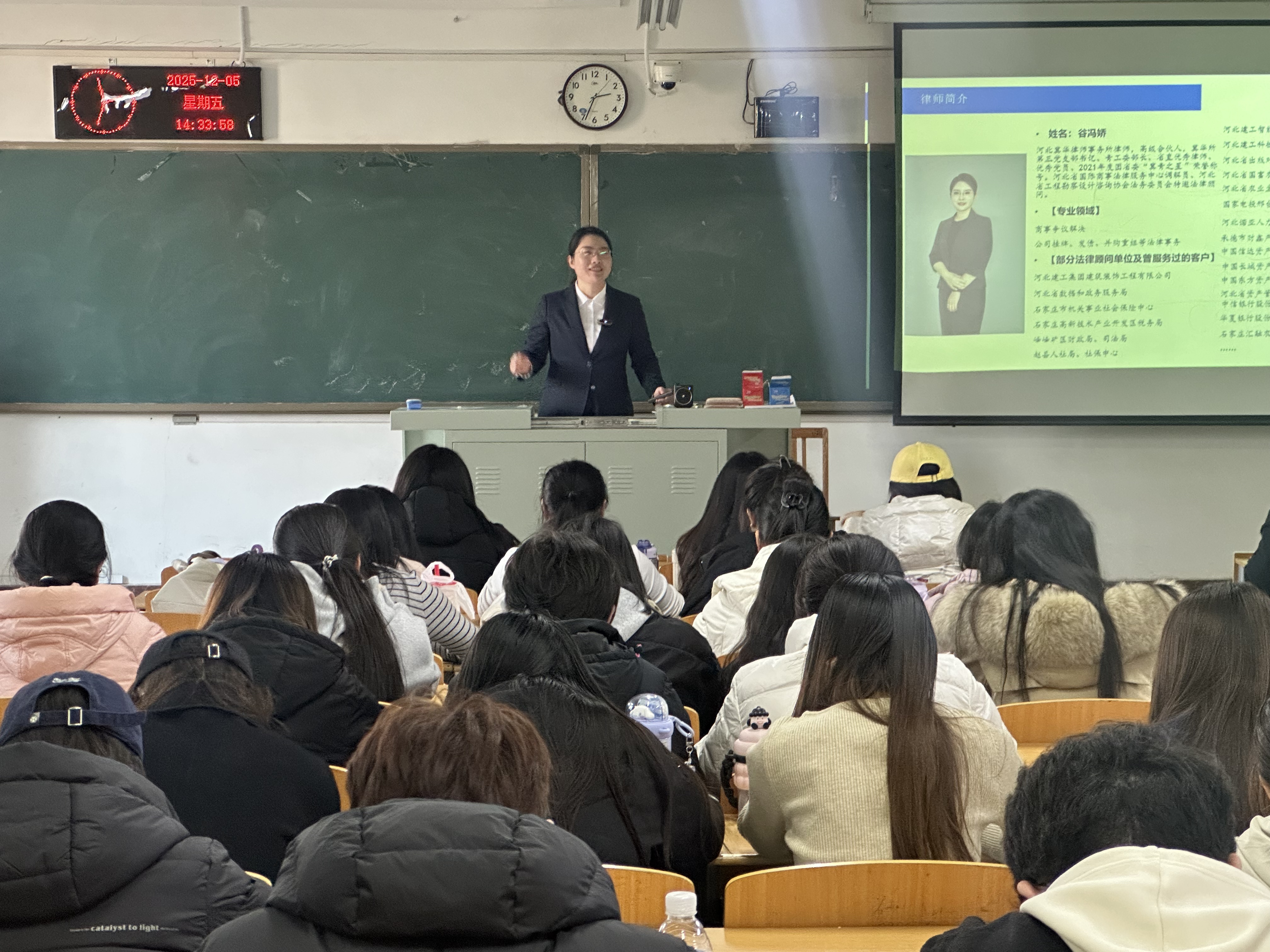 法政学部举行“双师同育,赋能增长”律师进课堂系列活动第七讲-缩小 放大+ 2025-12-0912 月 5 日,法政学部 “律师进课堂” 系列活动第七场在第六教学楼 403 教室开讲,2023 级法学专业全体同学聆听。河北冀华律师事务所谷冯娇律师以《最高人民法院关于审理劳动争议案件适用法律问题的解释(二)》(以下简称 “司法解释二”)为核心,深度解读其对施工企业用工风险的重塑与影响。