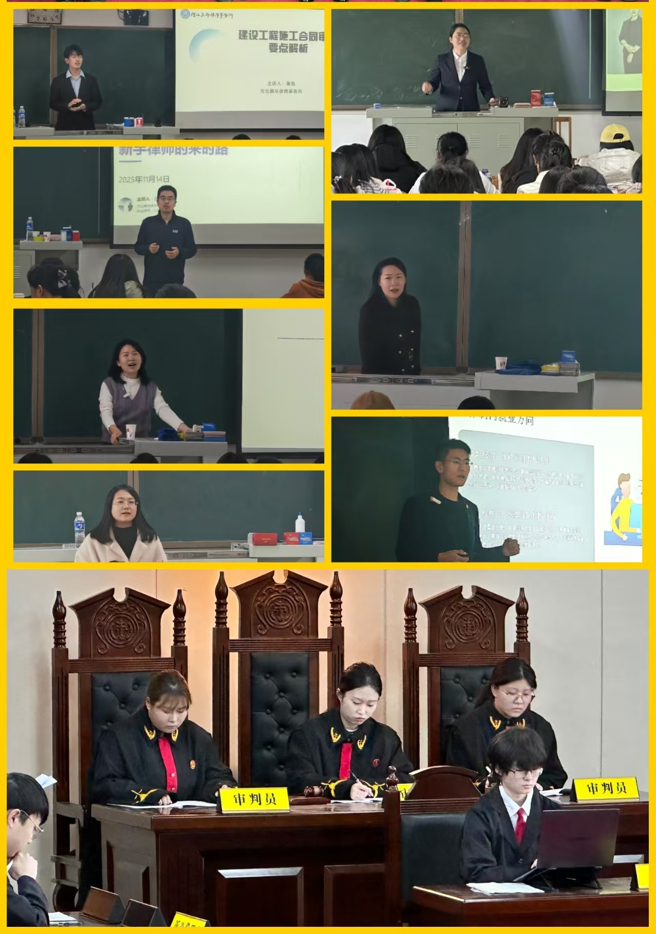 深化法学实践教学改革 携手共建特色课程体系-缩小 放大+ 2026-01-07为深入推进法学实践教学改革,促进法学教育与法律实务深度融合,法政学部与河北冀华律师事务所持续深化合作,于2025年10月至12月成功举办第二期“双师同育,赋能增长”律师进课堂系列活动。本学期,学部以构建《典型实务案例分析》特色课程为核心,系统整合“专题讲座+模拟法庭”立体化教学模式,全面覆盖法律实务关键领域与行业前沿,组织2023级法学专业学生全程参与,有效促进了法学理论与实务能力的有机融合,标志着学部在实践教学体系化建设方面迈出坚实步伐。 共建特色课程,打造“双师同育”育人新平台。法政学部坚持以产教融合为导向,积极拓展优质校外实务资源,将行业力量深度融入人才培养全过程。本学期,学部与河北冀华律师事务所紧密协作,聘任该所9位实务经验丰富、理论素养扎实的资深律师担任实务导师,面向2023级法学专业学生正式开设《典型实务案例分析》特色课程。该课程以真实案例为载体,通过律师进课堂、案例研讨、互动答疑等形式,引导学生近距离接触法律实务,系统锻炼法律思维与案例解析能力,为学生职业生涯发展奠定扎实基础。在课程建设过程中,校内教师与校外律师共同组建“双师型”教学团队,实现优势互补与资源共享,显著提升了法学专业教学的实践性与专业性,成为学部创新人才培养模式、强化实践教学环节的关键举措。 系列讲座精准赋能,实务智慧深度融入课堂。围绕特色课程建设,本学期累计开展7场专题实务讲座,内容紧密聚焦建设工程、争议解决、跨界发展、人工智能、合同审查、劳动用工等实务热点与难点领域,突出“专业化、实战化”导向。各位律师结合自身执业经历,分别围绕“建工法律实务与职业成长”“反诉案件处理逻辑”“工科背景下的律师发展路径”“工程造价纠纷实战”“AI时代律师能力矩阵”“施工合同审查要点”“企业用工风险防控”等主题展开深入讲授。讲座在传递丰富实务经验的同时,还围绕法考备考、职业规划、终身学习等话题与学生展开互动交流,实现了思想引领与专业能力提升的有机结合。 模拟法庭实战演练,助力综合素质全面提升。作为特色课程实践教学环节的重要组成部分,学部于12月9日成功举办模拟法庭活动。庭审以社会关注度较高的“继母虐待儿童致死案”为蓝本,学生分组扮演审判人员、公诉人、辩护人、被告人等角色,严格遵循诉讼程序,围绕事实认定、法律适用、证据质证等展开激烈辩论,展现出良好的专业素养与实战能力。活动特邀一级律师杨辉、李夕夕担任点评嘉宾。两位律师结合多年刑事辩护经验,从庭审程序、辩论策略、证据运用、人文关怀等多维度进行专业指导,在充分肯定学生表现的同时,也针对性指出提升空间,并深入解读相关罪名的司法实践要点,助力学生实现从知识理解到实践运用的能力跨越。 持续深化教学改革,着力培育高素质法治人才。本次系列活动是法政学部持续深化“双师同育”机制、构建特色实践课程体系的一次成功探索,逐步形成了“理论输入—技能传授—实战训练”的完整教学闭环,有效打破了校园与职场、理论与实践之间的壁垒。展望未来,学部将继续坚持产教融合、协同育人的发展路径,常态化推进实践教学创新,进一步拓展合作资源、丰富课程内涵、完善培养机制,致力于培养兼具扎实理论功底与精湛实务能力的高素质法治人才,为建设法治国家贡献积极力量。