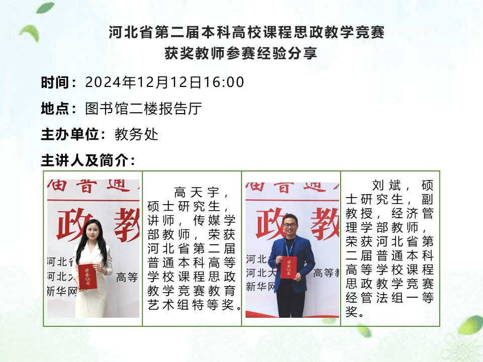 题目:河北省第二届本科高校课程思政教学竞赛获奖教师参赛经验分享