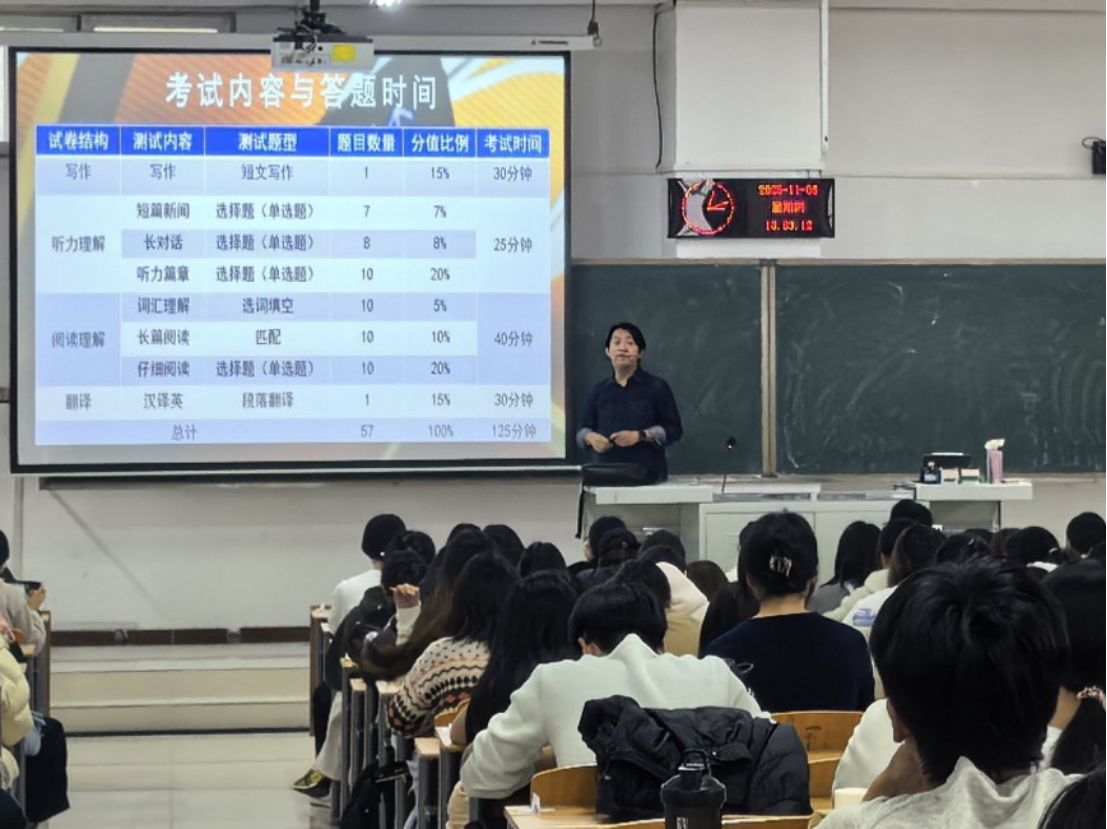 两场讲座有针对性地帮助同学们提升应试能力,精准解决备考中的痛点问题,为同学们后续复习明确方向,增强应考信心。教务处历来十分重视学生们的英语学习效果,在抓好日常课堂教学基础上,积极联系经验丰富的专业教师开展辅导,系统地传授给学生应对标准化英语考试的方法论,以期对学生未来的学业和职业发展有所裨益。