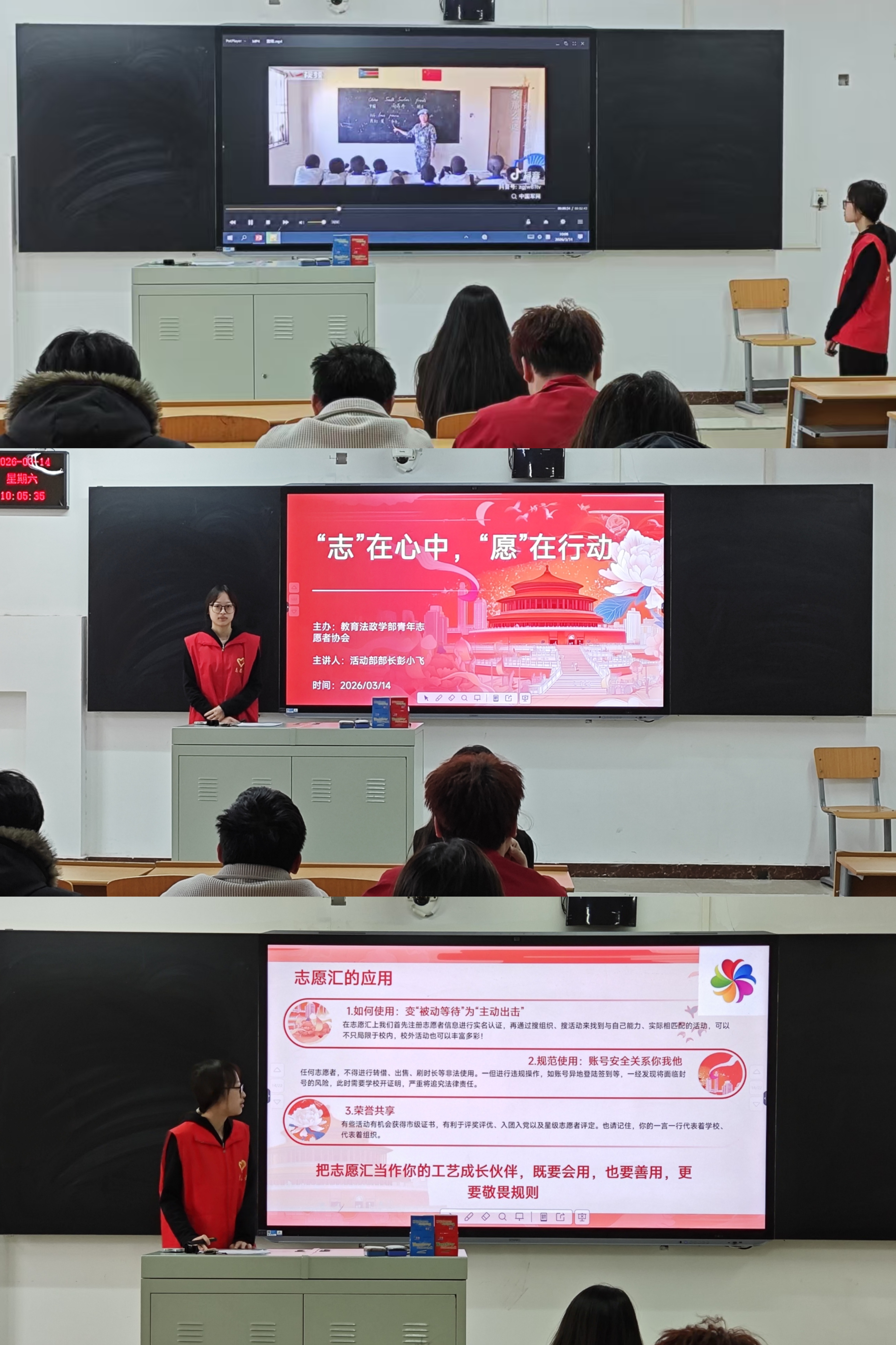 3月14日,学部青年志愿者协会于第六教学楼开展“‘志’在心中,‘愿’在行动”主题志愿培训活动。