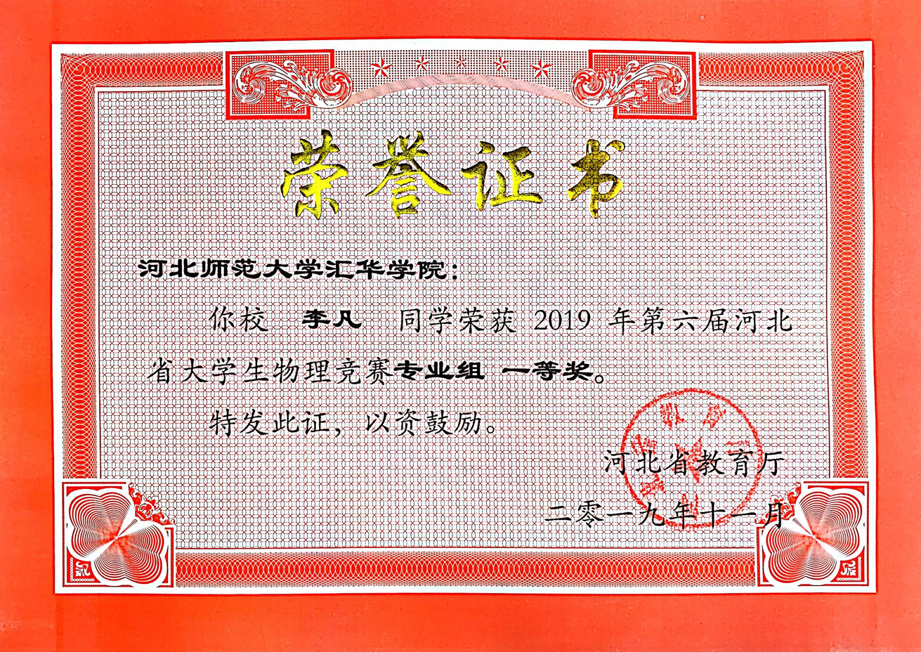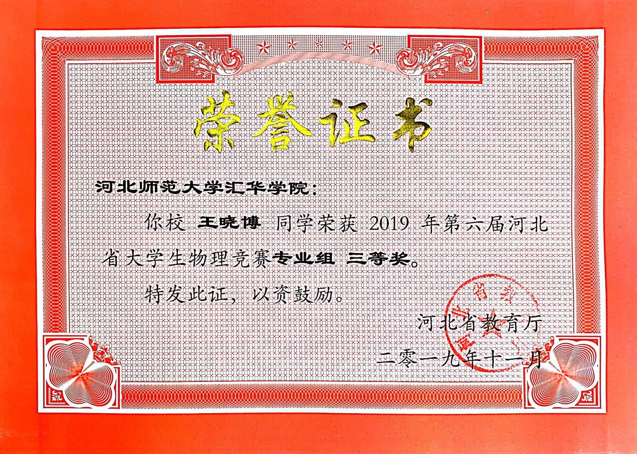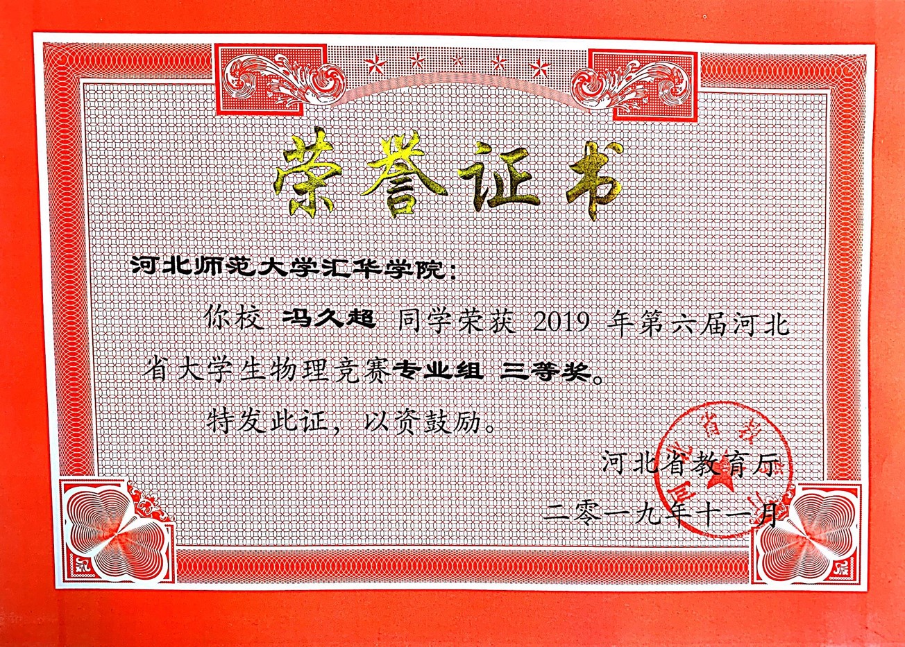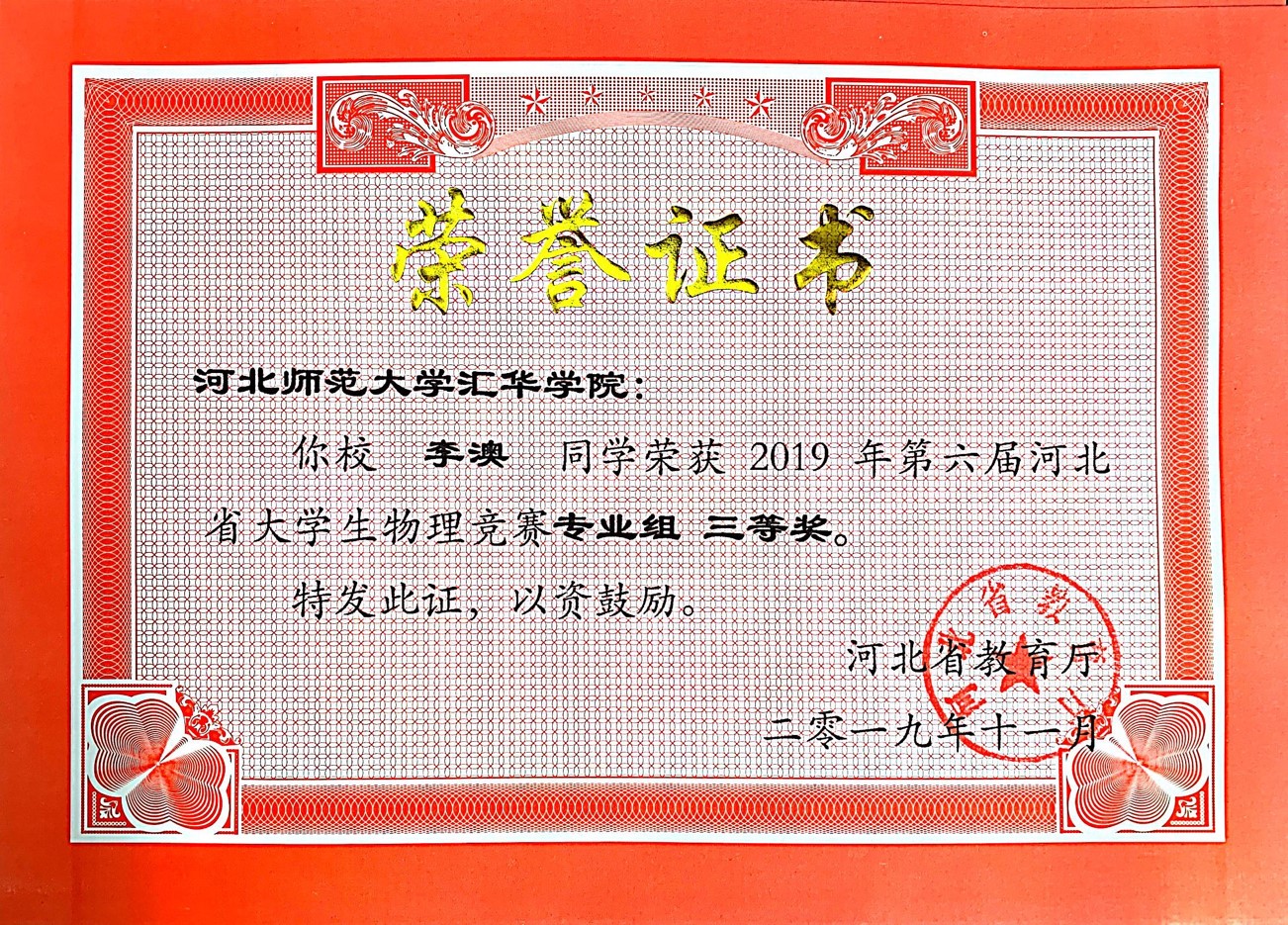 第六届河北省大学生物理竞赛(专业组)(2019年)