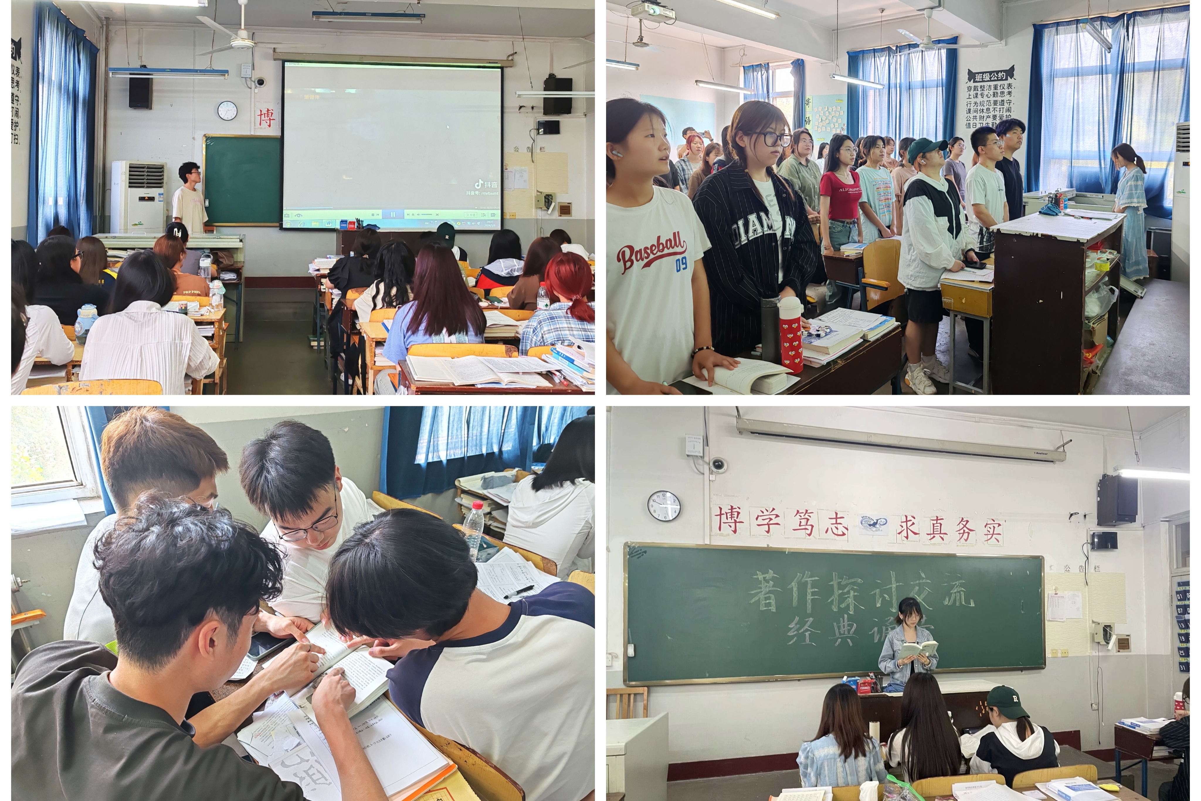 为了让同学们深入了解国家发展历程,培养爱国情怀,同时感受名著的魅力。2023 级生物科学2班于2024年5月9日在第二教学楼312教室举行了一场别开生面的“在发展中颂歌,于名著中探寻”活动。在班干部们的团结带领和积极动员下,班级成员被充分调动,活动得以顺利开展。 活动当天,同学们首先观看了精心挑选的国家发展视频,这些视频生动展示了国家在各个领域取得的巨大成就,直观地展现了国家的进步与腾飞,让同学们深刻感受到了时代的变革与发展,同学们深受鼓舞。紧接着,全体同学热情洋溢地合唱了《歌唱祖国》,激昂的歌声回荡在教室中,表达了同学们对祖国的热爱与赞美之情。随后,进入名著探讨环节。同学们积极分享自己阅读名著的心得与体会,对名著中的精彩情节和深刻内涵进行了深入剖析。大家在交流中碰撞出智慧的火花,进一步加深了对文学作品的理解。
