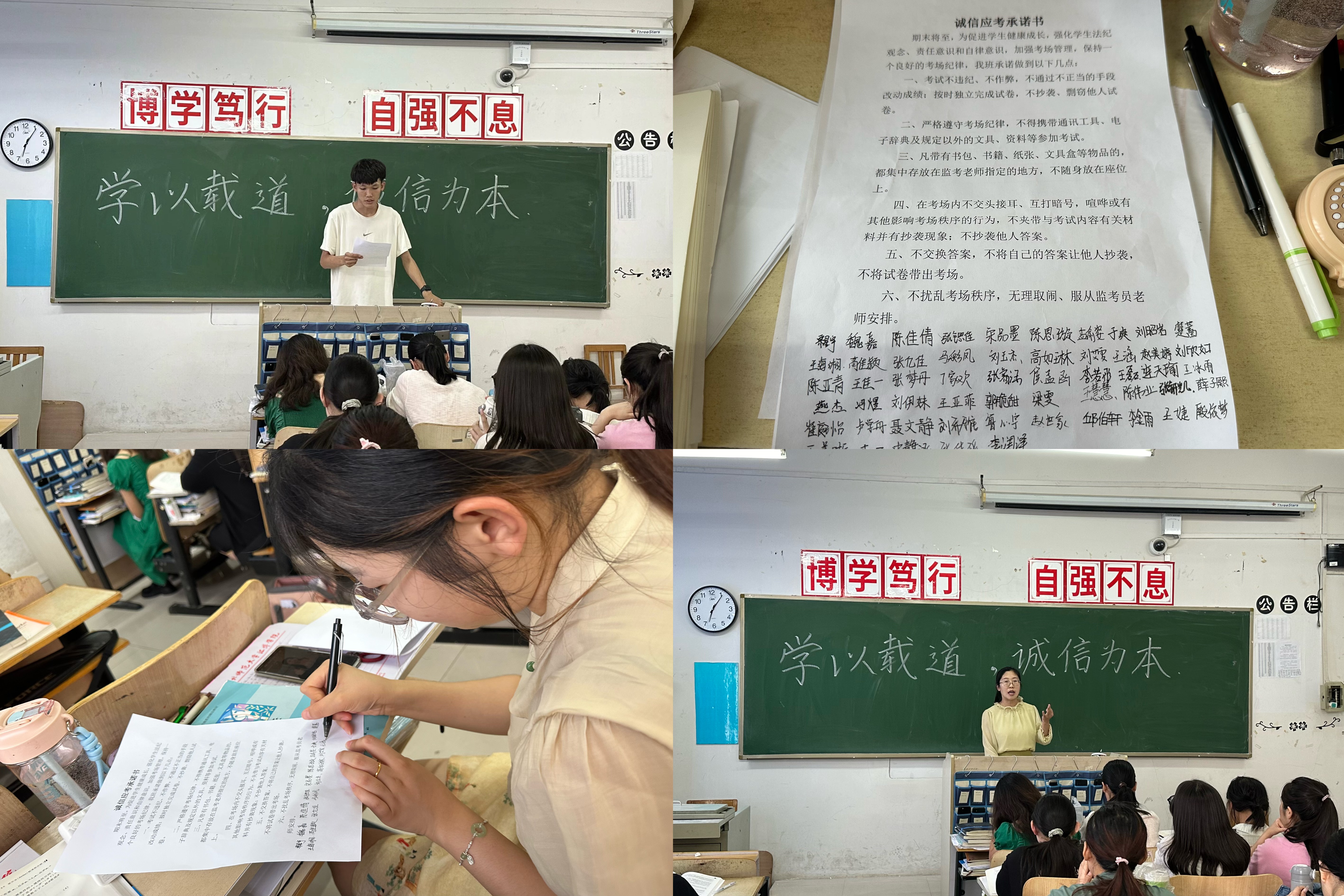 为了进一步加强班级学风建设,培养学生诚信应考意识,6月14日下午,2023级数学与应用数学2班的同学们在辅导员徐倩老师的带领下在二教402教室成功举办了“学以载道,诚信应考”主题班会。 班会过程中,徐老师结合实际案例,详细地为同学们讲解了有意作弊和无意作弊的各种行为表现,让同学们清晰地认识到考试作弊的严重后果,提醒同学们在考试中一定要严格规范自身行为,坚决杜绝任何形式的作弊行为。随后,班长兼团支书栗星宇再次强调了诚信应考的重要性,深入阐述了举办此次主题班会的目的和意图,使同学们更加深刻地理解了诚信的意义。接着,栗星宇组织同学们有序地签署诚信应考承诺书,同学们郑重地签下自己的名字,承诺尊重考试规则,诚信应考。在班会的尾声,徐老师也郑重地在承诺书上签字,与同学们共同立下这份神圣的“军令状”。