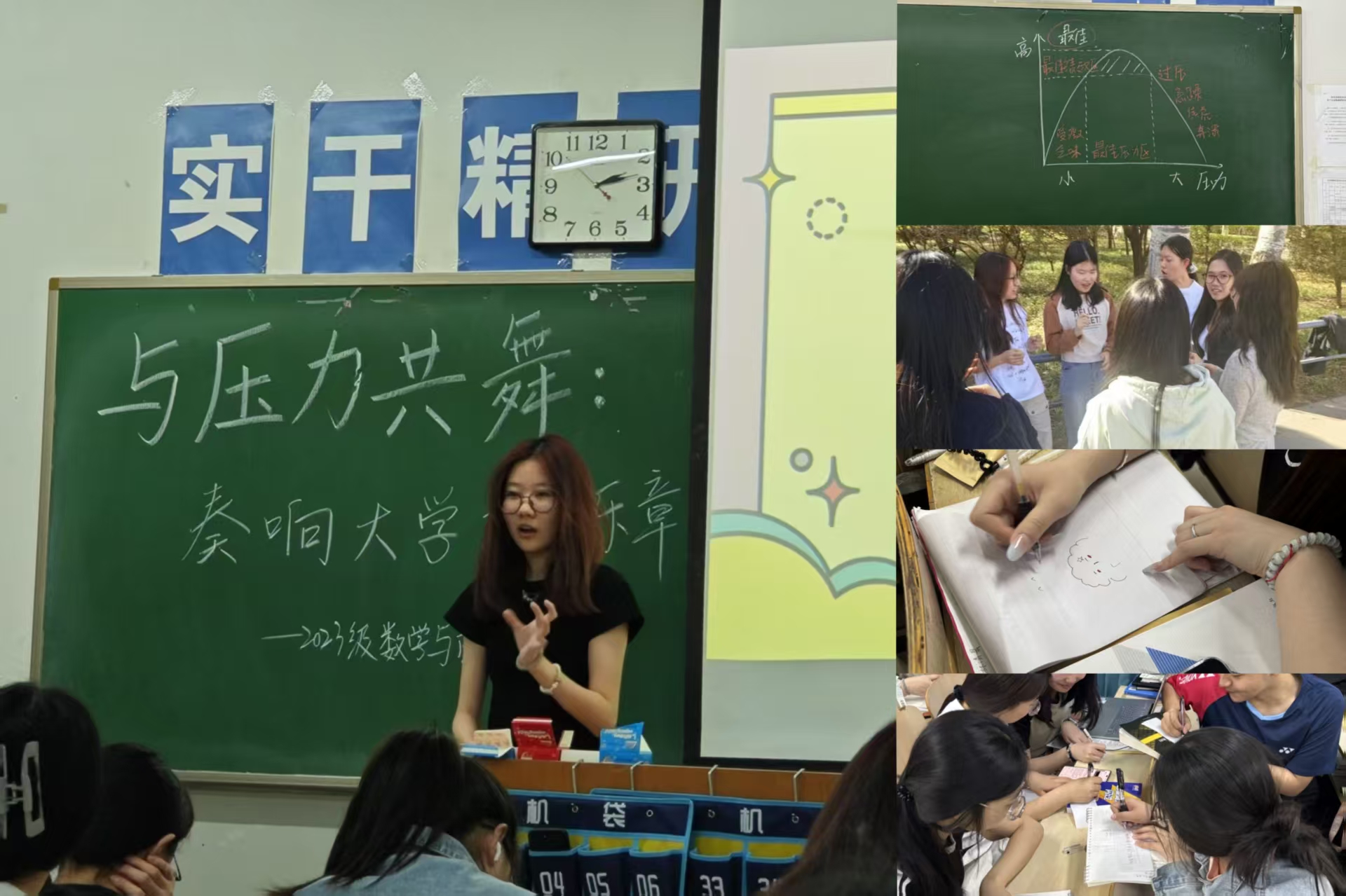 活动分为室内班会和户外拓展两部分。班会环节中,方学婧首先以生动的案例和互动问答引导同学们分享自身压力来源,并介绍“压力曲线理论”,强调适度压力的积极作用。随后,通过“情绪涂鸦”活动,同学们用画笔表达内心感受,并在小组讨论中分析压力应对策略。户外环节,班级前往学校操场开展趣味减压游戏:“压力气球爆破”让同学们在奔跑和欢笑中释放情绪,“信任背靠背”则通过团队协作增强彼此支持感。活动最后,大家围坐成圈,分享感悟,并写下“压力缓解心愿卡”,互相传递鼓励。 本次活动不仅有效缓解了同学们的心理压力,更让班级凝聚力得到显著提升。同学们纷纷表示,通过此次活动,对心理健康有了更深的理解,将会以更积极的心态面对学业与生活。未来,将持续关注同学们的心理健康,定期开展相关活动,让2023级数学与应用数学1班成为一个更加温暖、团结的大家庭。 |