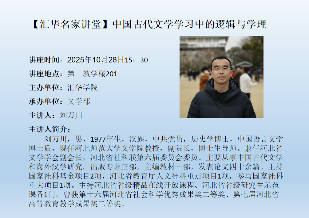 • 【汇华名家讲堂】中国古代文学学习中的逻辑与学理