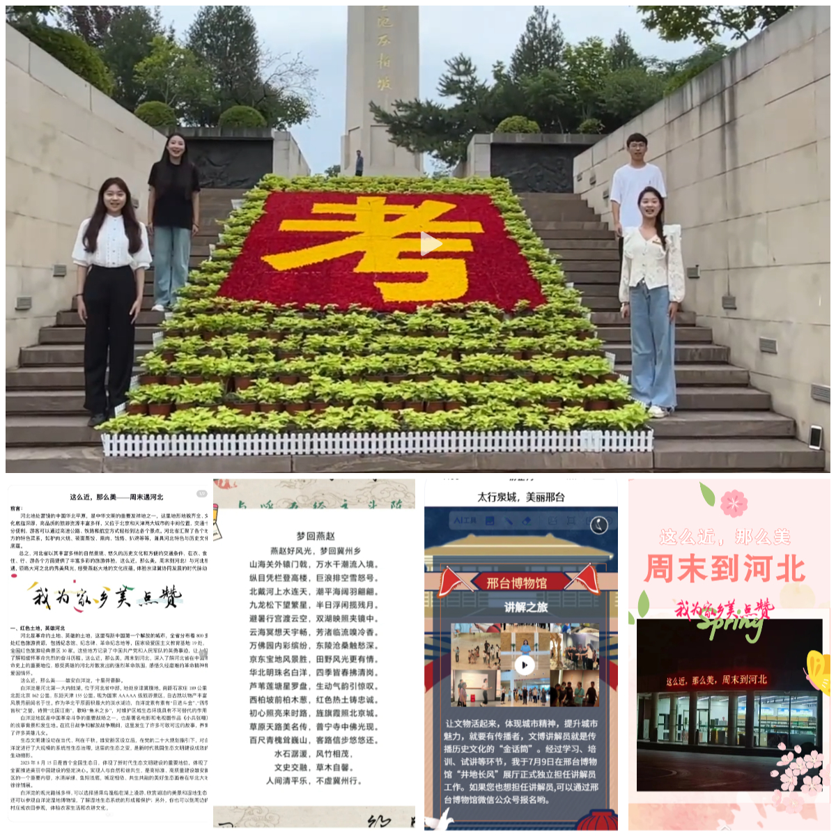 学院团委自7月起,聚焦红色精神、时代发展、旅游风光、传统文化、乡村振兴、遇见艺术等六个方面的内容,积极创作传播反映河北之“美”的各类优秀作品,鼓励师生运用新视角,借助新媒体,创作视频、图文、表演、文学等作品,展现河北各地的新变化,为奋力谱写中国式现代化建设河北篇章贡献青春力量。