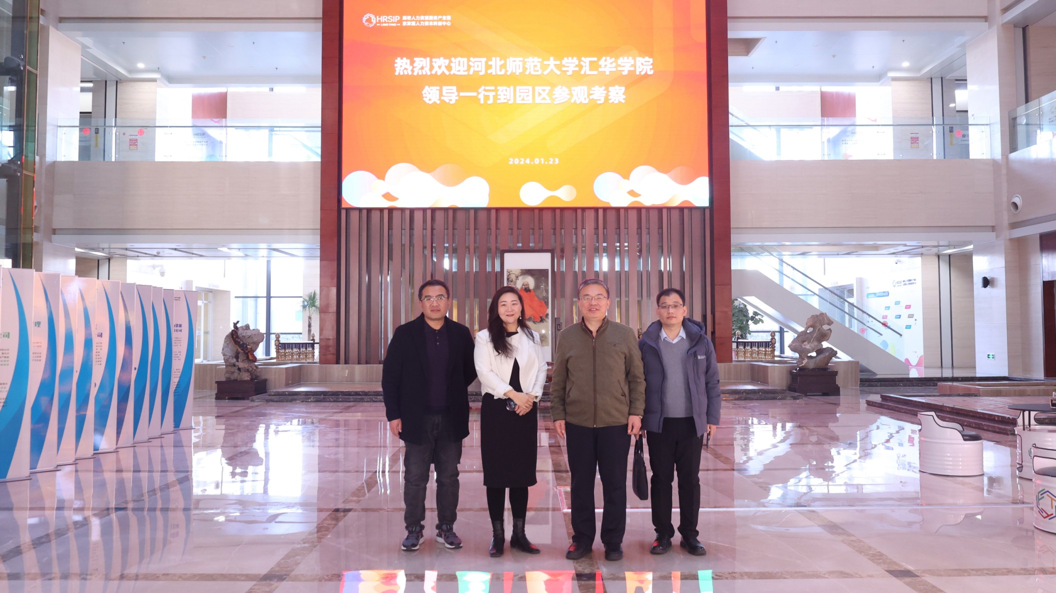 徐国强首先到廊坊人力资源服务产业园考察交流,廊坊人力资源服务产业园总经理李婕热情接待了徐国强院长一行,并详细介绍了产业园的基本情况。廊坊人力资源服务产业园成立于2021年5月,是以构建新型人力资源服务体系为目标,按照“一园多能”模式规划,突出“集聚产业、协同创新、培育市场、促进就业、服务人才”核心功能定位,实现公共服务充分保障,市场经营性服务逐步壮大,高端服务业务加速发展。2023年1月获批认定省级人力资源服务产业园。徐国强先后参观了HR&HC产业展厅、人力资源服务超市、人才会客厅、人才创客空间,在党建活动室体验了党建VR实景模拟,与入住园区的河北诺亚德汇人力资源服务有限公司廊坊分公司、锐仕方达人才科技集团有限公司廊坊分公司负责人作了交流。随后,徐国强与李婕进行了座谈,双方就产教融合、校企合作及如何实现毕业生高质量充分就业展开深入探讨,并就合作领域、合作方式达成共识。
