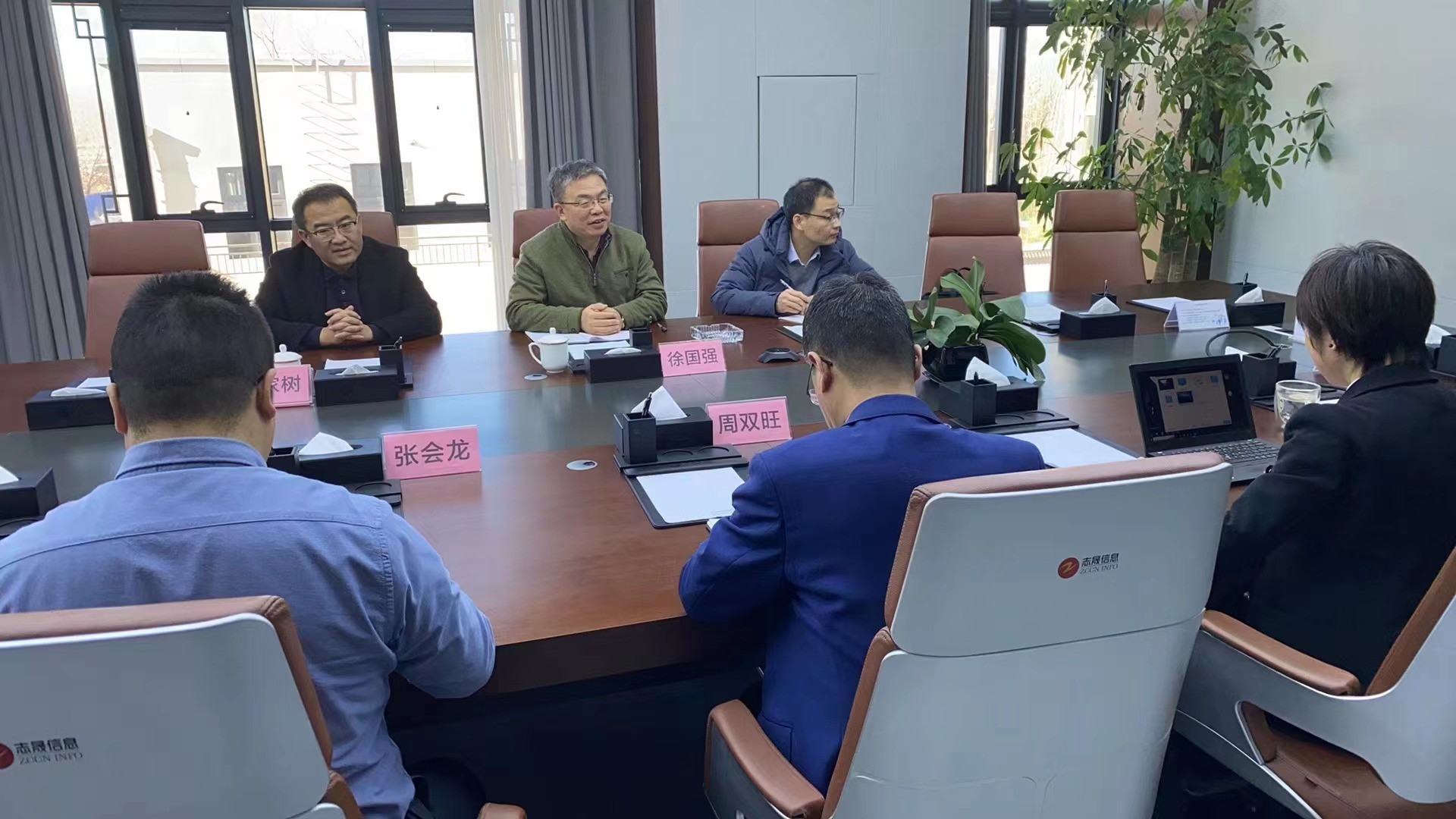 同日,徐国强还实地走访了河北志晟信息技术股份有限公司,同公司董事、副总经理周双旺进行了座谈交流。河北志晟信息技术股份有限公司是一家专注于智慧城市领域的信息化项目方案设计、建设、运营的高新技术企业,以“发展智慧产业,创造幸福生活”为愿景,不断开拓进取、务实创新,是河北省服务业民营企业100强之一,拥有全资或控股子公司10余家,是首批北京证券交易所上市十佳企业之一。公司业务主要涵盖智慧城市领域的方案设计、软件研发、系统集成、运营服务等。公司围绕“政务、产业、民生”核心领域,运用大数据、云计算、物联网、GIS、人工智能、区块链等技术,通过自主研发形成信息化行业产品,为用户提供智慧城市综合解决方案;并利用在智慧城市领域多年积累的技术优势与行业经验,为用户提供可持续的运营管理服务。徐国强一行参观了公司总部,周双旺对徐国强院长一行表示欢迎,双方就IT人才培养校企合作的意向、领域、方式进行了研讨、交流。