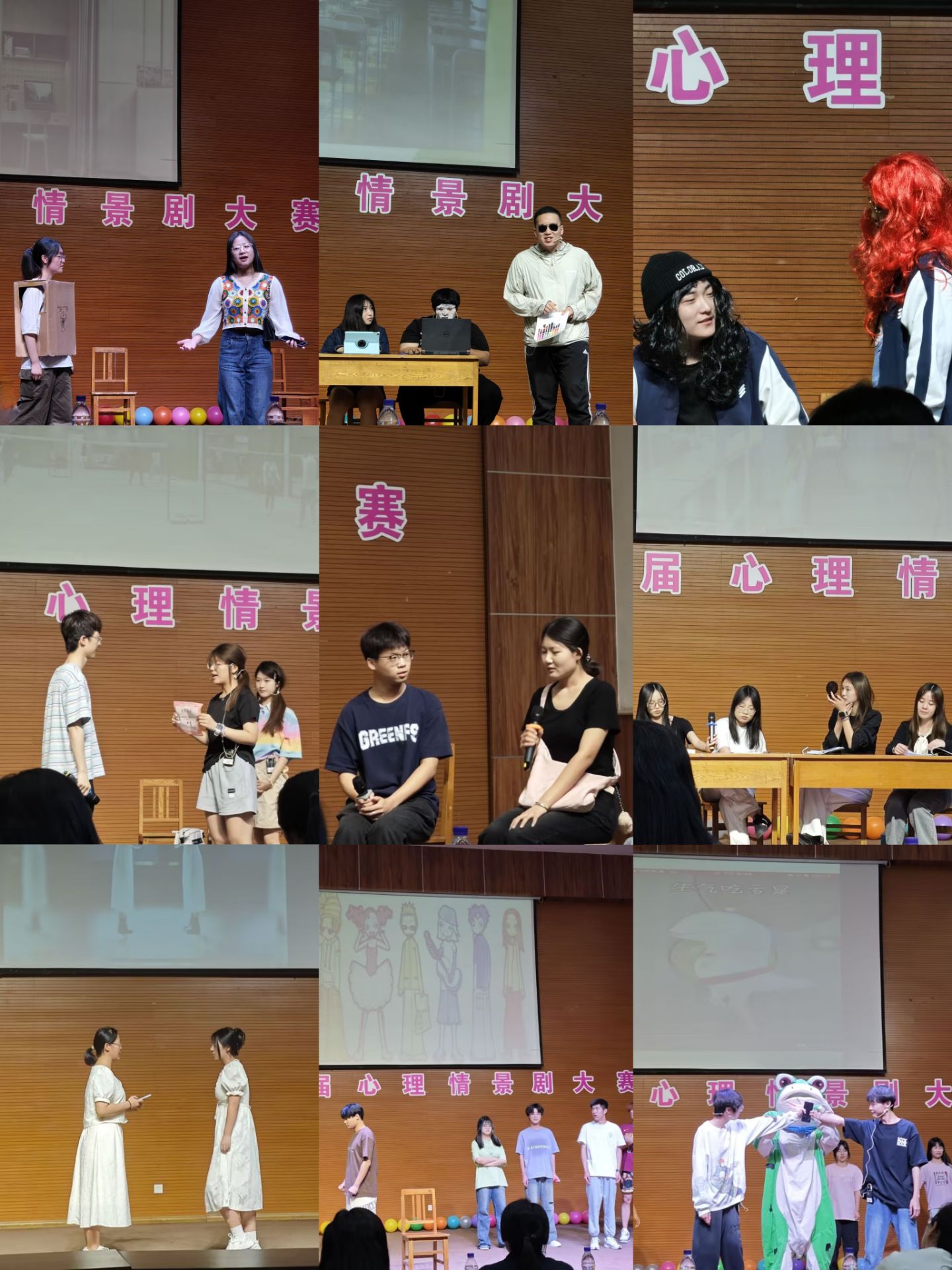 文学部《在河畔》讲述了五个性格迥异的朋友在旅行过程中的磨合,从不善于表达自己,到慢慢袒露心声,认识到自己的不足,相互理解,享受旅行的快乐。经济管理学部带来的《玫瑰送给自己》围绕当代大学生经常会遇到的心理问题——焦虑与内耗,从身材焦虑、恋爱焦虑、容貌焦虑、内耗焦虑来展开,引导大学生直面生活,拒绝焦虑和内耗,接受自己的不完美,了解到每一个人都是独一无二的。理学部《追逐星星的人》讲述了在现代直播热潮中,大学生星星由于担心自己不合群,而陷入了疯狂购物的泥潭里,迷失了自我,在“快递盒子”和朋友们的帮助下,星星最终明白了爱自己并不意味着要买什么,而是要倾听自己的内心,明白了什么是自己真正想要的。由理学部《双面镜》围绕当今主流问题之一——自卑展开,讲述了女主角向往变美却又自我否定,最终与家人、与自己达成和解的过程。容貌没有天花板,自卑才是无底的深渊。引导大家不要自卑,远离自卑,同时也多多看到家人对自己的爱与关心。教育法政学部的《春山裹雾》围绕“自我悦纳”展开,讲述初入大学的学生如何发现自我价值,鼓励大家肯定自我,接受自己的每一面,同时也教会大家要分享每一份温暖与爱。外语学部《愿你拥有不被喜欢的勇气》中一位总是尽力满足他人需求的老好人,展开了一段关于自我成长与界限探索的旅程。剧中情节的转变不仅教会了女主角如何设立个人界限,更向观众传达了一个重要信息:我们值得被爱是因为我们是谁,而非我们为别人做了什么。拥有不被喜欢的勇气,是成长路上宝贵的一步,鼓励每个人勇敢地活出真我,珍惜自我价值。由传媒学部带来的《卷心菜的初心》围绕当代大学生陷入盲目内卷怪圈的现象,讲述一个普通大学生如何跳出盲目内卷去追求真正热爱的故事。呼吁当代大学生要去追求自己真正喜欢的事情,不随波逐流,专注自己,提升自己。工学部带来的《陌上花开》将主角的六种常见情绪拟人化,以主角和同学的矛盾为主线,表现出主角情绪间的冲突,突出合理控制情绪的重要性。由大学生心理健康发展协会带来的《破晓之声》围绕当今社会热点问题——校园霸凌展开,讲述了霸凌行为对受害者和施暴者的危害,同时展示了作为旁观者应该如何正确面对霸凌事件。鼓励大家怀着同理心去帮助身边正在遭受欺凌的同学,携手营造一个和谐、安全的校园环境。