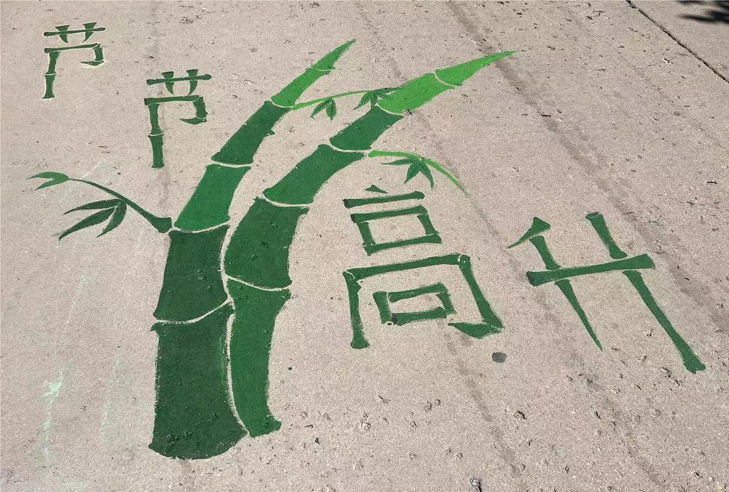 学生们无畏酷暑,手握缤纷的画笔,挥洒着五光十色的颜料,在地面上精心勾勒出一幅幅寓意深远的画作五十余幅。这些作品从艺术学部的门前起步,如同一条绚丽的艺术长廊,蜿蜒延伸向学院的宽阔主干道,形成了一道亮丽的风景线。每一笔、每一划,都承载着毕业生们对未来的美好期许和深深祝福,希望即将踏入社会的学子们,能够带着艺术的心态,去欣赏生活的多彩,去品味工作的乐趣,勇敢地迈向那充满无限可能的阳光大道。其中,“心想事成”的画面以饱满的橙子为主体绘制,象征着毕业生们能如愿以偿,梦想成真;“诸事顺意”则以可爱的小猪、花朵为元素进行绘制,寓意着毕业生们未来的生活将如顺水行舟,一帆风顺;“节节高升”的画面中,青翠的绿竹挺拔向上,象征着毕业生们在未来的学习和工作中能够不断进步,步步高升;“一鸣惊人”的画面,鲸鱼在海面跳跃,象征着毕业生们将如鲸鱼般跃出海面,一鸣惊人,惊艳四座。