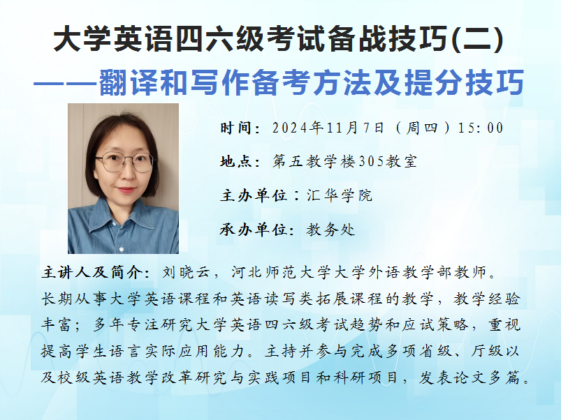 讲座题目:大学英语四六级考试备战技巧(二)——翻译和写作备考方法及答题技巧