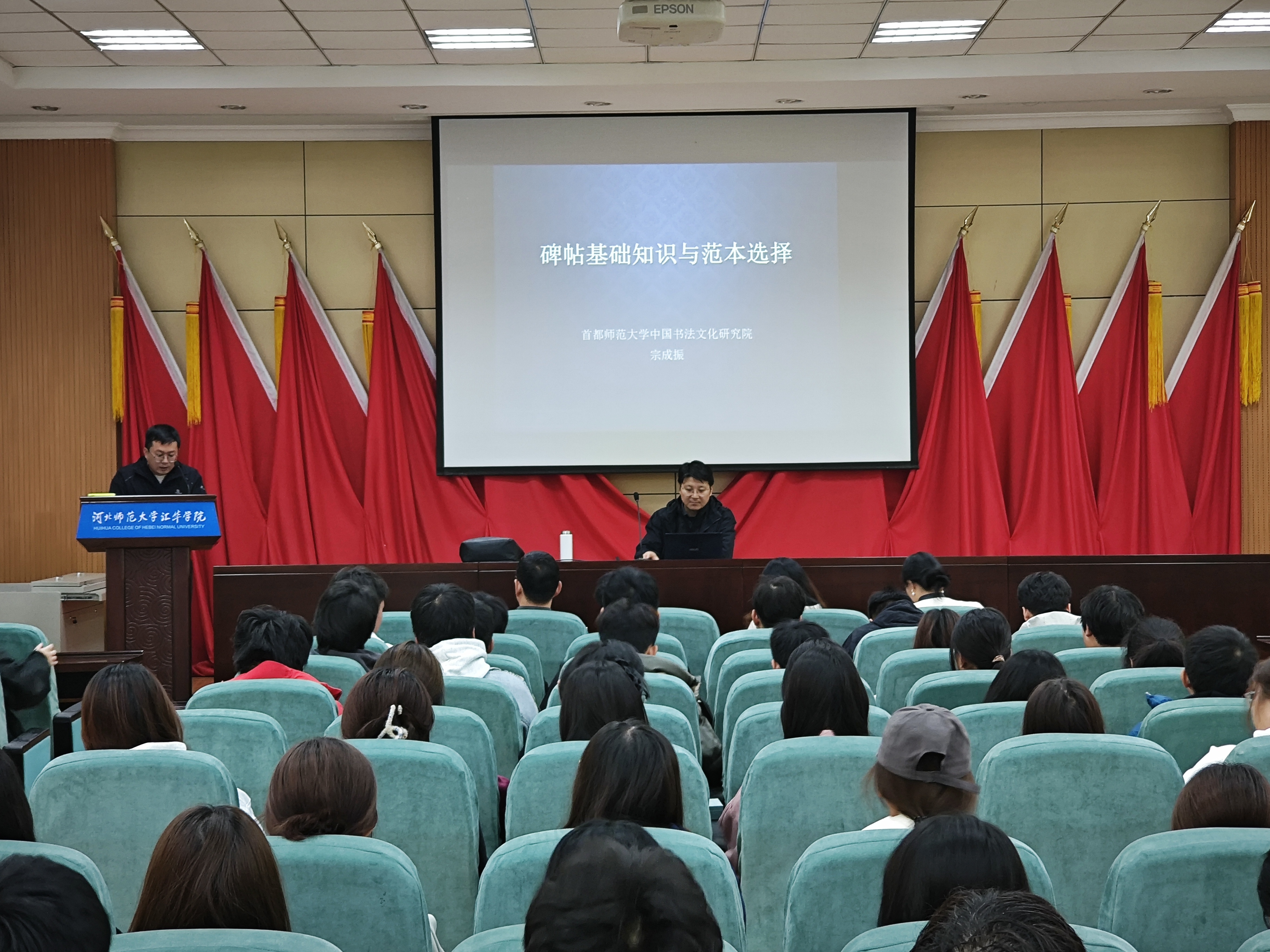 10月25日上午,首都师范大学中国书法文化研究院宗成振教授做客“汇华名家讲堂”,在图书馆一楼报告厅为米乐集团师生作题为“碑帖基础知识与范本选择”的学术报告。艺术学部部长秦笑笑、副部长及部分教师出席活动。