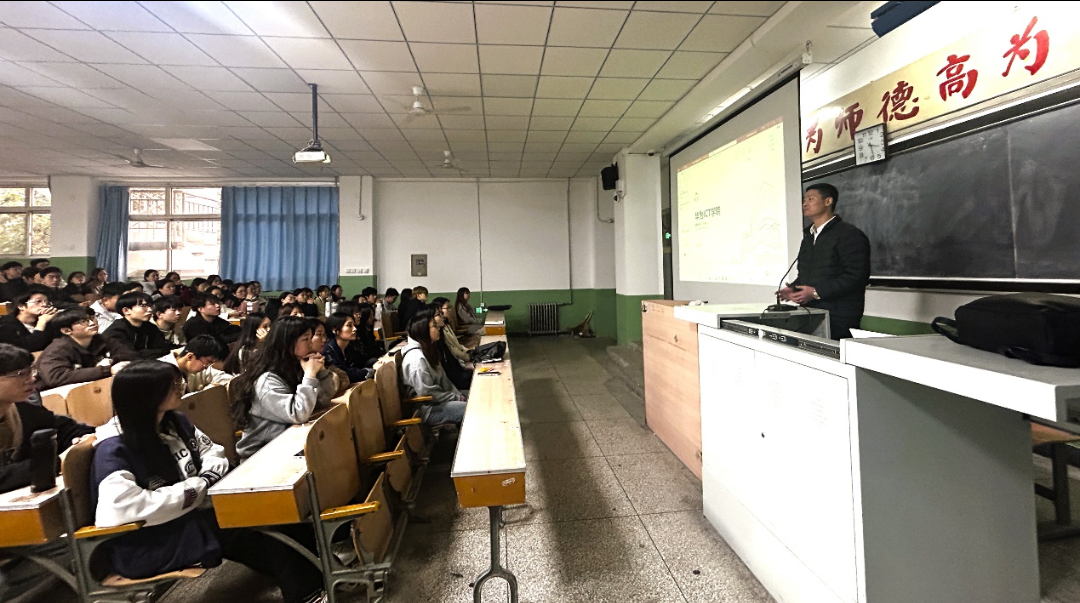 讲座伊始,河北省信息协会副会长王玉江以宏观视角为师生们介绍了华为ICT学院。王玉江指出,华为作为全球领先的信息与通信技术(ICT)解决方案供应商,一直致力于推动ICT技术的发展和应用。华为ICT学院的成立,是华为公司积极履行社会责任、助力高校人才培养的重要举措。通过与高校合作,华为将自身的技术优势、行业经验与高校的教育资源相结合,为学生提供更加优质的教育教学服务,培养出更多符合社会需求的高素质ICT人才。