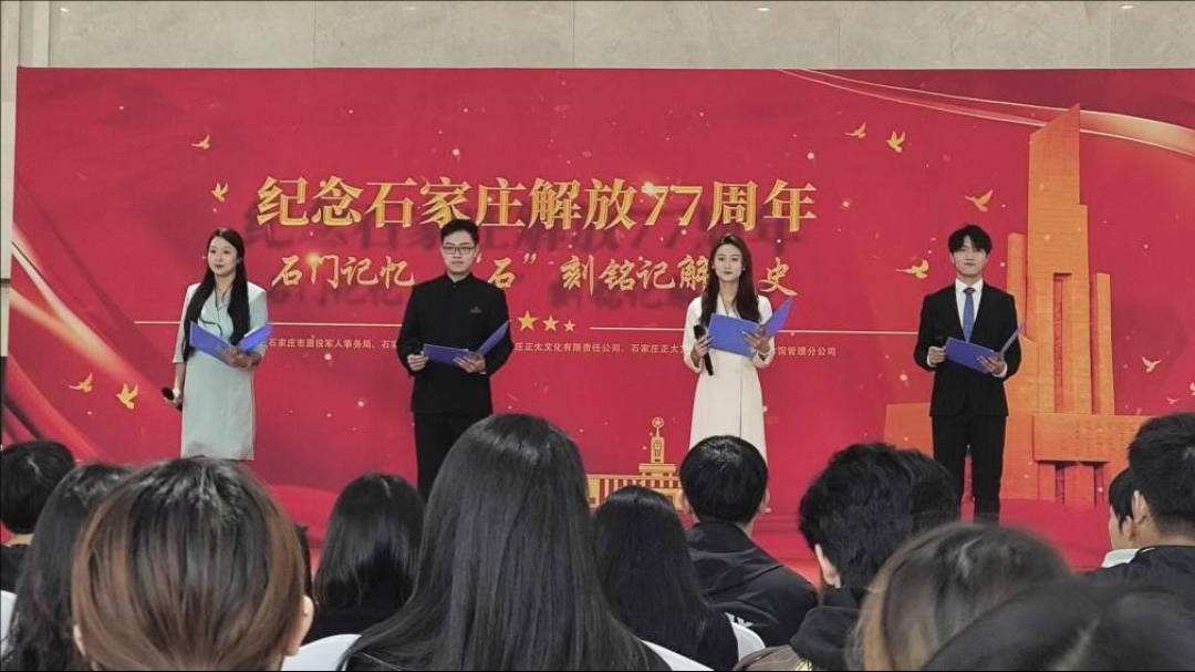 11月11日-12日,为纪念石家庄解放77周年,传承红色基因,弘扬爱国主义精神,米乐集团传媒学部与石家庄解放纪念馆联动交流,以图文展览、文艺展演、现场朗诵等形式向学校师生、市民群众讲述石家庄解放的光辉历史。