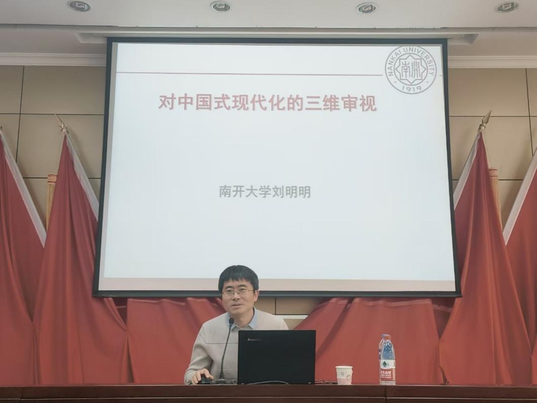 11 月 23 日下午,实验管理中心与法政学部共同承办了主题为“中国式现代化的三维审视”的学术讲座。邀请嘉宾为南开大学教授、博士生导师刘明明。刘明明教授聚焦中国式现代化相关专题,通过深入剖析和解读,揭示了最新的科研动态,拓宽了师生的学术视野,为师生们带来一场知识盛宴。