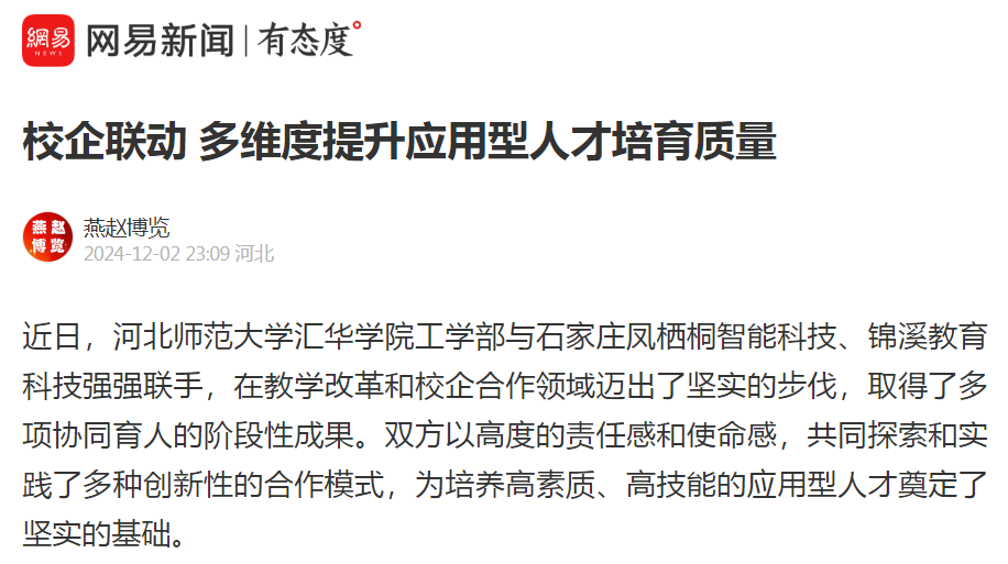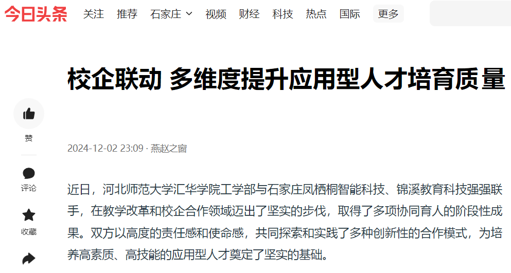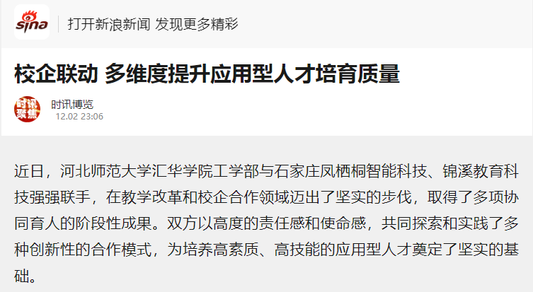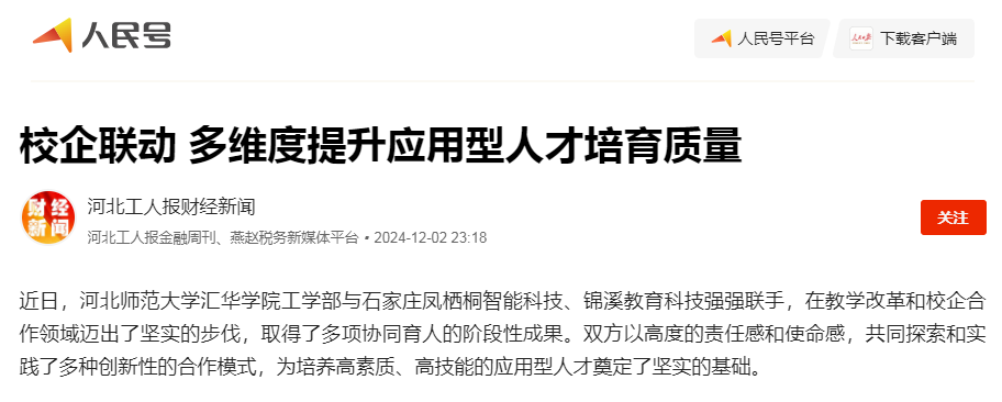 12月2日,今日头条、网易新闻、搜狐新闻、新浪新闻、燕赵时讯、燕赵财经、财经时讯、时代之窗、河北工人报财经新闻等多家媒体对米乐集团“校企联动 多维度提升应用型人才培育质量”的举措进行了报道。