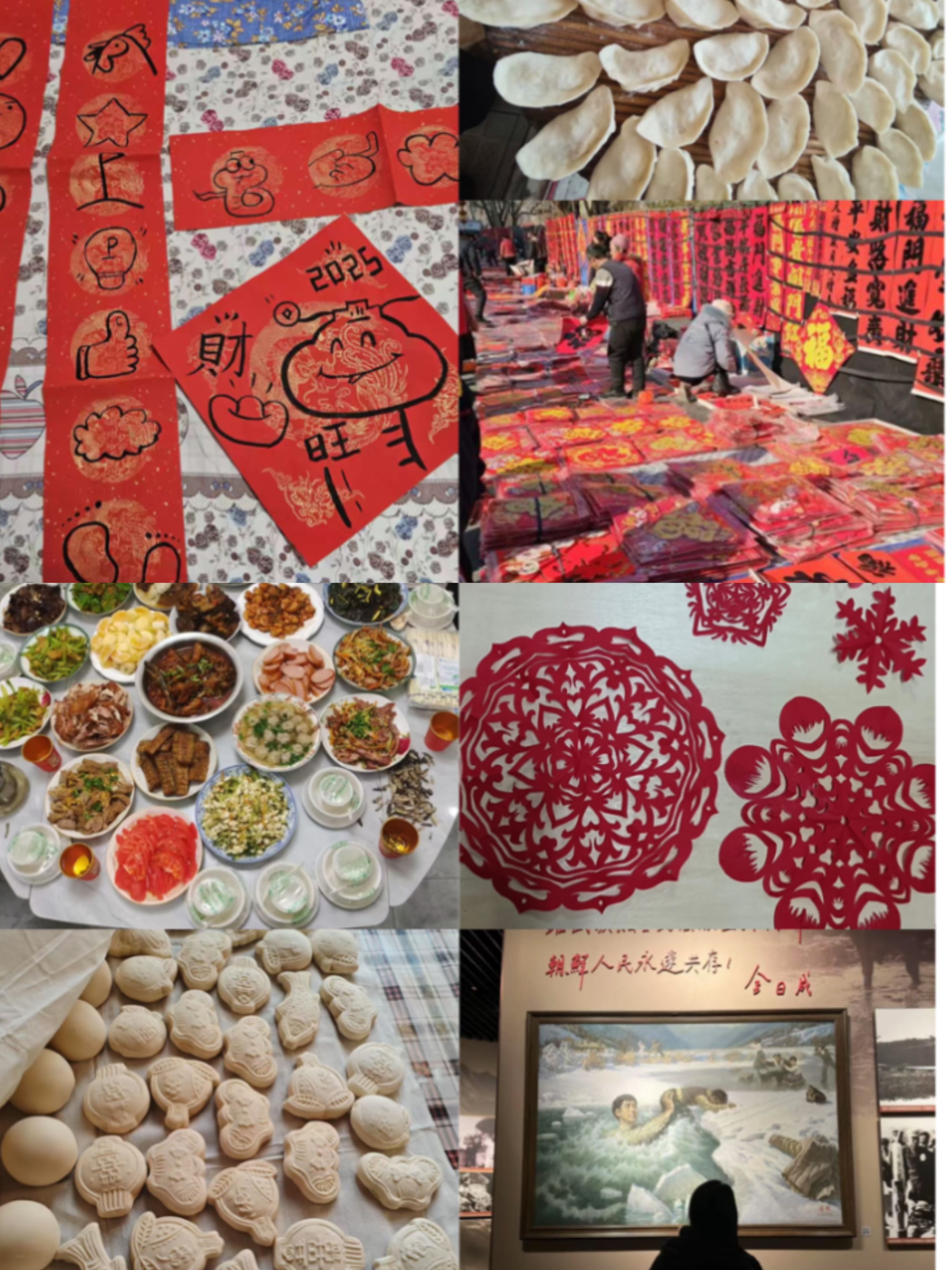 传媒学部开展“循迹山河,红游华夏”红色精神寻访行动,400余名学生实地走访参观了唐山地震博物馆、正定博物馆、大兴安岭“五·六”火灾纪念馆、赵博生事迹展览馆、侵华日军南京大屠杀遇难同胞纪念馆等红色主题展馆、景区与革命圣地等红色地标,撰写参观心得200余篇;同时,以光影纪实,讲好中国故事,充分发动共青团员、积极分子、共产党员以摄影、摄像的方式,呈现共产党员、社区志愿者、好人好事、奋斗故事、传统文化、年俗传承等各类主题形象。2023级广电学生摄影作品《我与老党员合影》,通过一张充满温情的合影,展现了新一代对老党员的敬仰与传承红色基因的决心。摄影作品《“福”灯笼》,通过对灯笼的拍摄,展现出满满的年味,以及对团圆的美好期盼。假期中,总共征集摄影作品360份。《内画》《蔚县剪纸》《墨韵留痕:指尖下的全形拓》《百醋香》聚焦中国传统技艺传承,体现文化内涵、彰显匠心魅力。播音与主持艺术专业更创新举办“班级春晚”,学生自编自导节目,以专业能力传递节日温情。