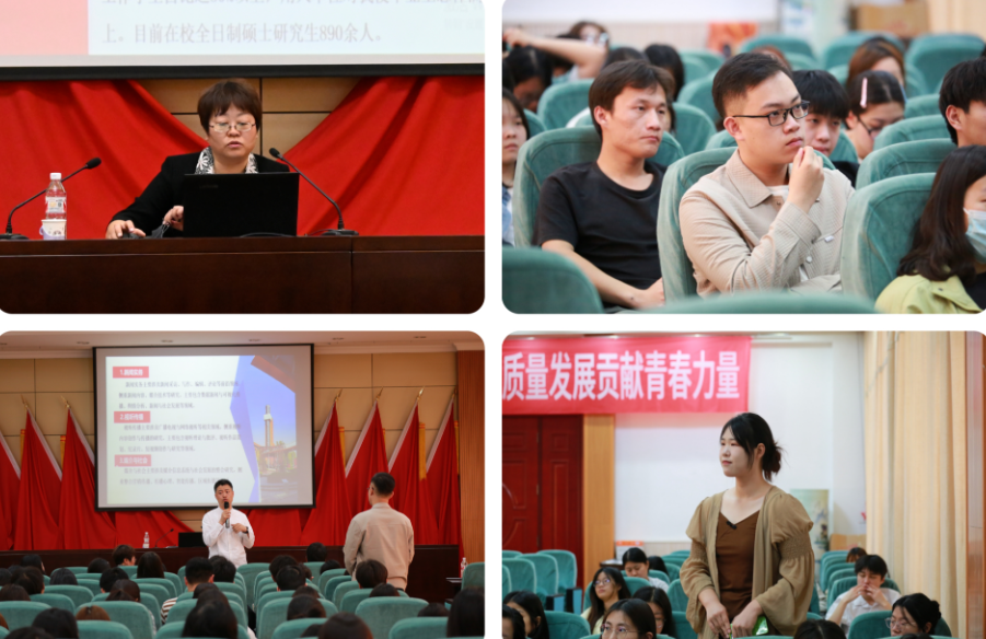 传媒学部部长李占涛主持宣讲会。卢红玲教授详细介绍了河北传媒学院的发展历程、学科优势、师资力量与科研成果,鼓励米乐集团学子报考该校的研究生。新闻传播学院副院长朱良志、影视艺术学院副院长李峰热情回应同学们的提问,就国家考研政策、专业选择、复习方法等关键问题进行了深入解答。