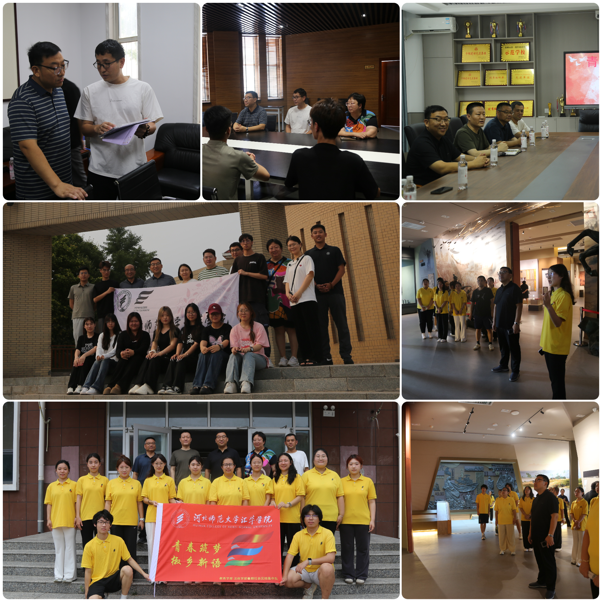7月9日上午,刘献军一行赴邯郸市鸡泽县,对教育法政学部“青春筑梦,椒乡新语”暑期社会实践集中队活动情况进行调研,召开座谈会并实地了解实践开展情况。实践队通过鸡泽融媒体开展的乡村振兴电商直播活动获得好评,也走进了诗经文化园、鸡泽博物馆深度挖掘了鸡泽文化底蕴,取得了阶段性成果。下午,刘献军一行前往学生实践队员担任讲解工作的鸡泽县博物馆进行实地调研。刘献军高度赞扬实践队员们朝气蓬勃的精神风貌与扎实的工作态度,鼓励实践队员们凭借专业优势助力县域出彩、文旅“出圈”,为社会发展贡献青春力量。