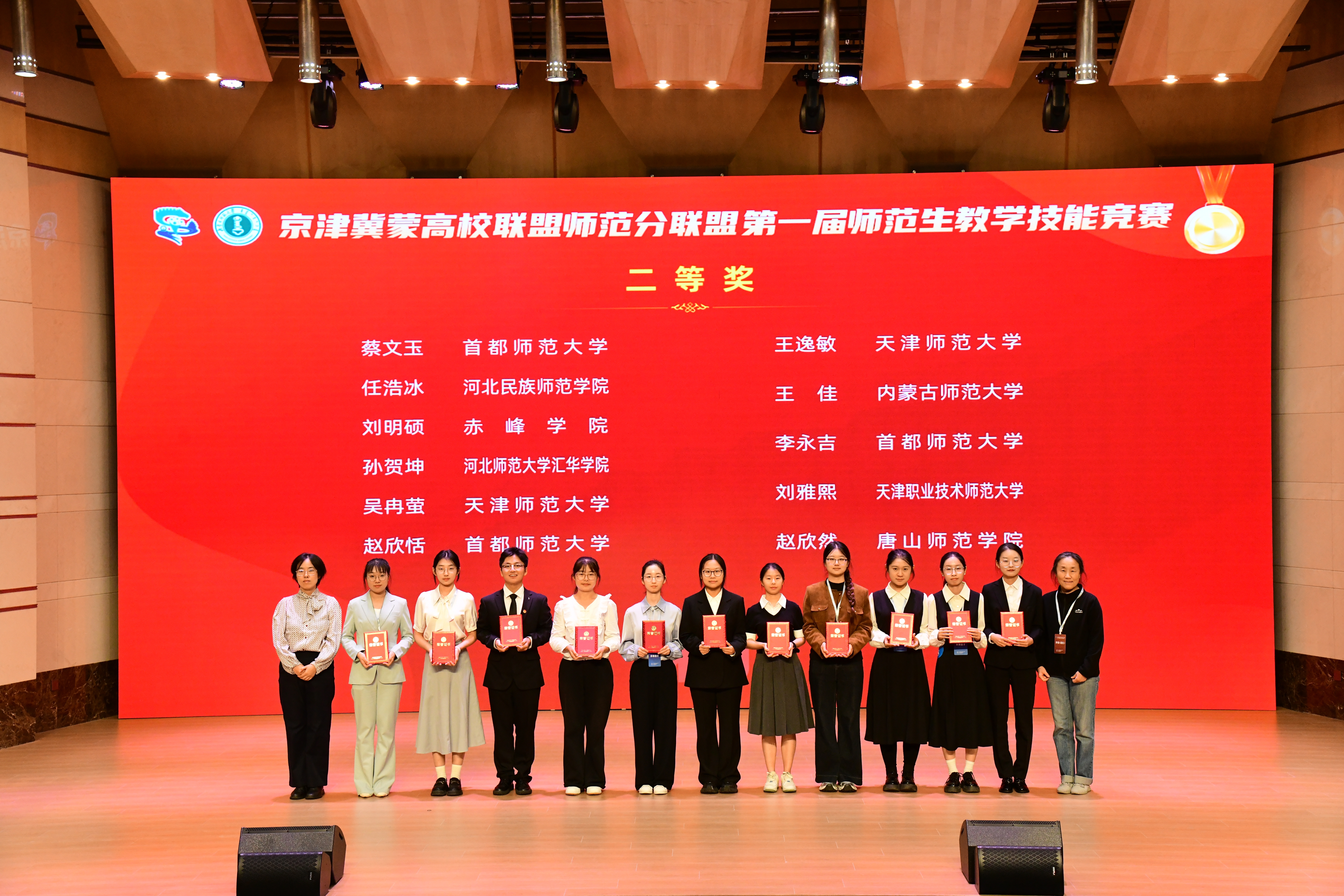 本次竞赛以“规范教学技能训练、提升师范生综合素养”为核心,汇聚京津冀蒙四地29所高校的167名选手同场竞技,覆盖高、初、小三个学段11个组别(含高中9大学科、初中科学、小学教育)。经过激烈角逐,大赛共评选出一等奖22名、二等奖33名、三等奖47名。