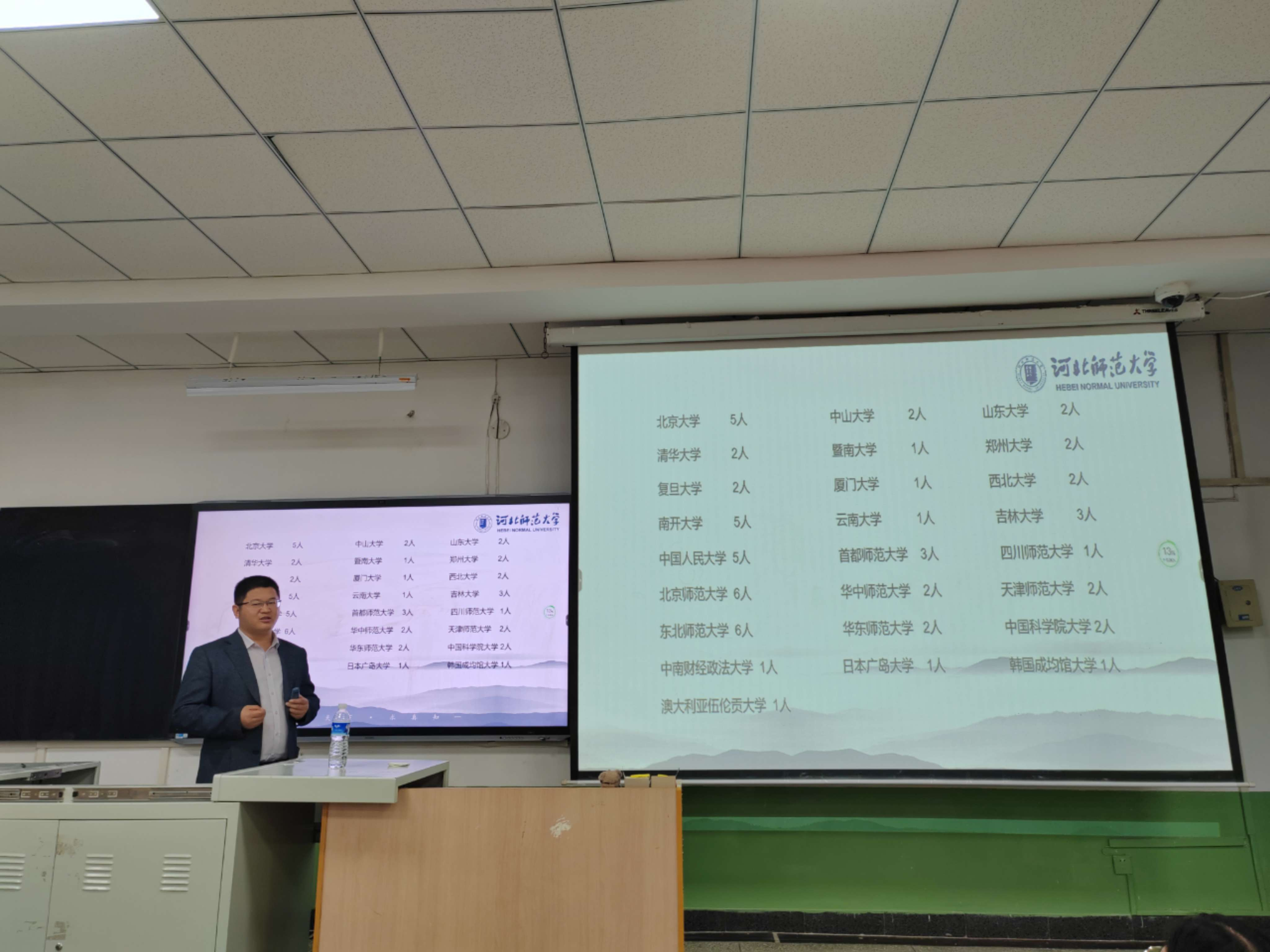 随后,中国史老师李晓明老师从中国史专业的角度展开介绍。他深入讲解了中国史专业的各个研究领域,如古代史、近代史、现代史等,分析了不同研究方向的特点和发展趋势。李晓明老师结合自身的教学和研究经验,鼓励同学们积极投身于中国史的学习与研究,通过深入挖掘历史资料,传承和弘扬中华优秀传统文化。同时,他还对考研备考过程中的学习方法、资料选择等问题提出了宝贵建议,让同学们受益匪浅。