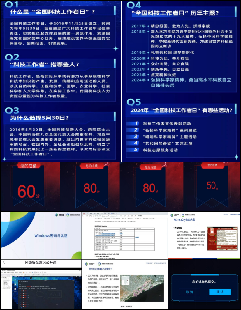 活动中,信息安全小组结合“全国科技工作者日”的由来、意义以及历年主题进行了科普宣传,并开展了网络安全专题教育,多维度引发了师生共鸣,与会人员都深刻感受到了科技工作者们的辛勤付出和崇高精神。