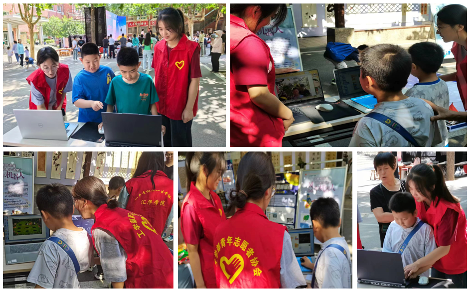 在活动现场,服务队成员们成为了一道亮丽的风景。他们凭借着对科技的深厚理解和热爱,以及对孩子们未来成长的关怀,精心准备了一系列前沿科技展示与互动环节。在Scratch少儿编程区,志愿者们用生动形象的讲解和互动操作,引导孩子们探索编程的奥秘,激发他们对科技创新的浓厚兴趣。孩子们在拖拽积木式的代码块中,不仅学会了基本的编程技能,更在创造属于自己的动画、游戏和音乐中,感受到了科技的无限魅力。