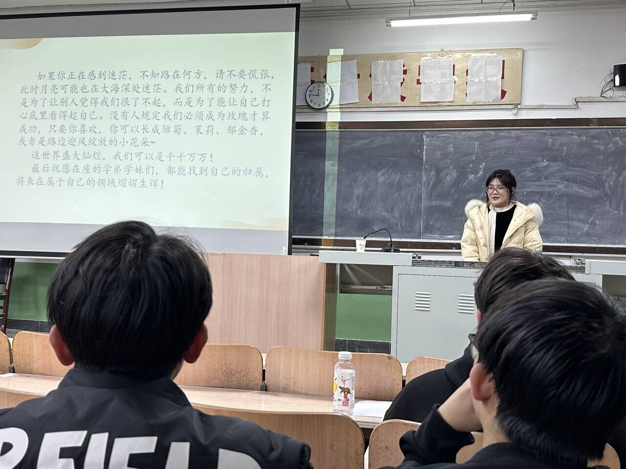 讲座最后,梁佳怡同学对学弟学妹们提出了殷切希望。她希望同学们能够珍惜大学时光,努力追求自己的梦想和目标。同时,她也祝愿大家在未来的学习和生活中能够取得更加优异的成绩和更加丰硕的成果。