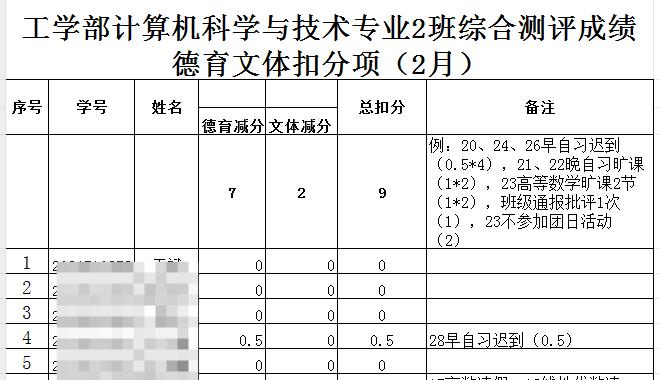 3. 旷课每节扣1分,无故迟到或早退者每次扣0.5分。