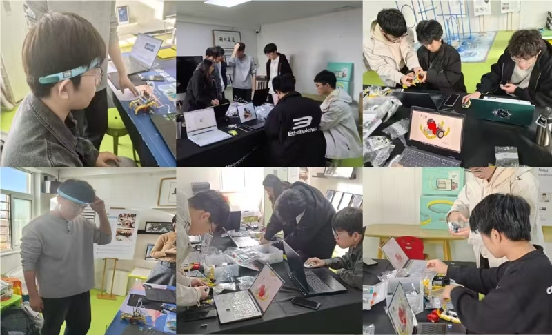 近日,工学部“人工智能AI筑梦促成长”志愿服务队机器人教育部踏入凤凰机器人单位,开启了一场精彩的交流实践活动。此次活动紧密围绕当下炙手可热的前沿科技领域——脑机接口,旨在通过深度实践操作挖掘利用头环控制单片机器小车的创新应用可能,为人工智能教育与机器人技术融合开辟新思路。