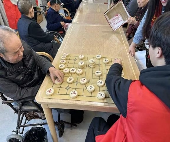 志愿者们以“关爱老人、传承美德、丰富生活、加强关注”为宗旨,通过互动交流、文艺表演、智慧助老等多元形式,为百余位老人送去春日温情。清晨八点,志愿者们身着红马甲,在敬老院门前集结,活动以问候老人拉开序幕。随后,互动环节正式开始:棋局对弈中,青年与长者指尖博弈、笑语连连;故事分享时,沧桑岁月与青春感悟交织共鸣。上午十点,文艺表演将气氛推向高潮——志愿者献上《茉莉花》等经典歌舞,并邀请老人齐唱《南泥湾》,沧桑歌声与年轻旋律碰撞出时代回响。午后,“智慧助老”课堂开讲,志愿者一对一教老人使用微信视频、拍摄抖音短片,同时普及反诈知识,老人们戴上老花镜认真记录,感慨“科技不再冰冷”。活动尾声,志愿者们送上书籍、水果,并协助整理居室,下午三点在合影中定格温馨瞬间,活动历时7小时圆满落幕。