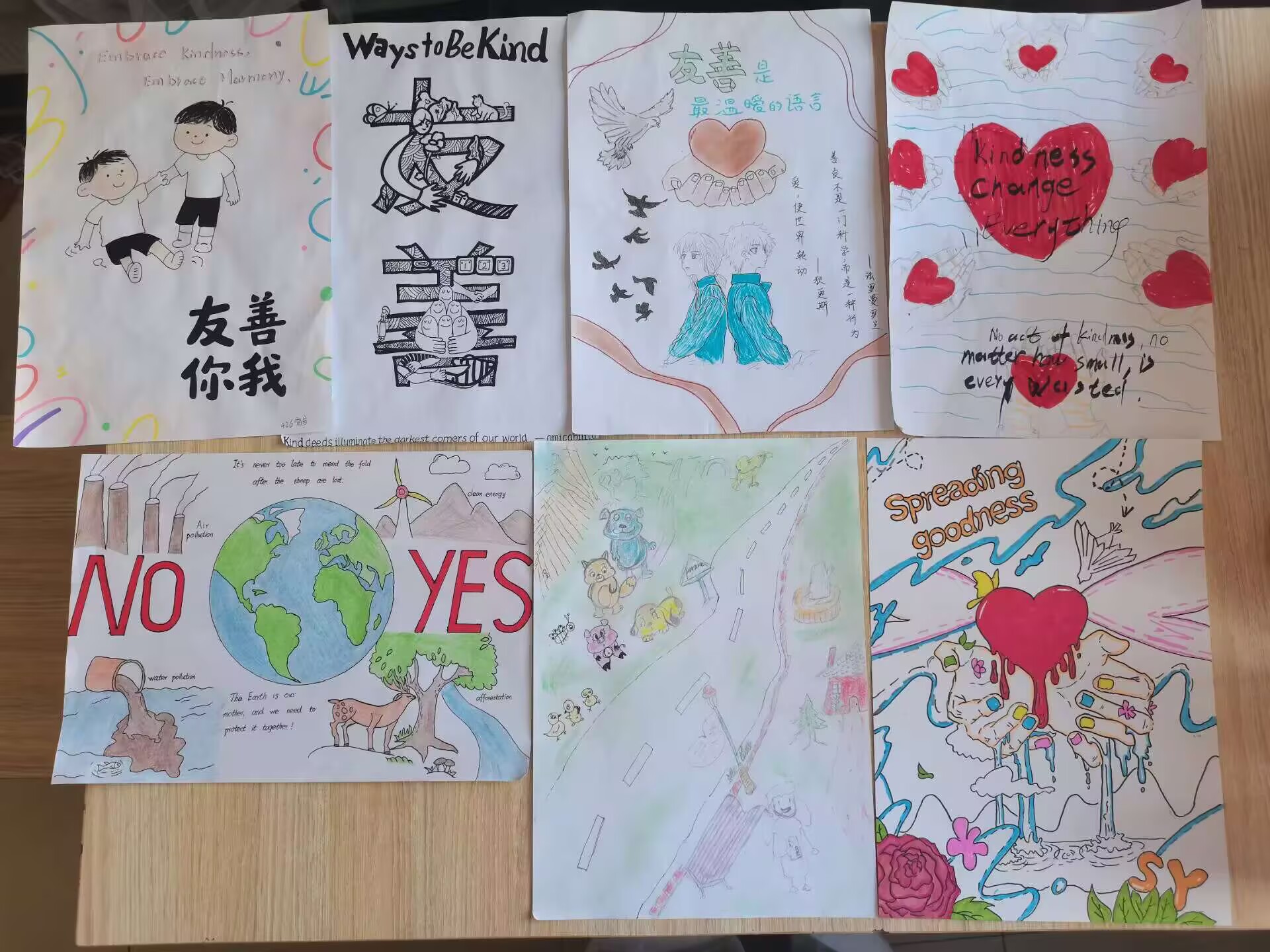 在设计目的上,同学们一致希望通过海报展示友善行为在日常生活中的体现,无论是同学之间的互助、师生之间的关爱,还是善待环境和自然,都成为海报设计的重要元素。他们希望借此机会,唤起大家对友善行为的重视,鼓励同学们在日常生活中积极践行友善,营造更加和谐美好的校园氛围。