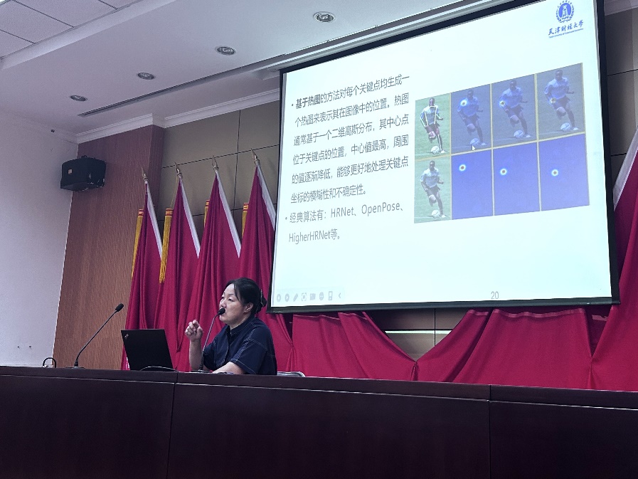 讲座中,刘赏教授结合智能健身、游戏体感交互等应用场景,阐释姿势估计技术的重要性,深入解析卷积神经网络(CNN)、循环神经网络(RNN)等算法在该领域的应用原理。通过对比传统与深度学习方法,她指出传统方法依赖人工设计特征,在复杂场景下精度与效率不足,而深度学习凭借海量数据训练,能自主学习特征,优势显著。刘教授还以“多人运动姿态实时分析系统”等实际案例,详细介绍从数据采集、清洗到模型训练、算法优化的全流程及关键技术要点。互动环节,同学们踊跃提问,聚焦考研考“408科目”提出了诸多问题。刘教授结合自身教学经验与学校招生情况,细致解答,同时介绍了天津财经大学计算机科学与技术等专业学科优势、师资力量及校企合作、国际交流等特色培养模式,鼓励同学们报考深造。