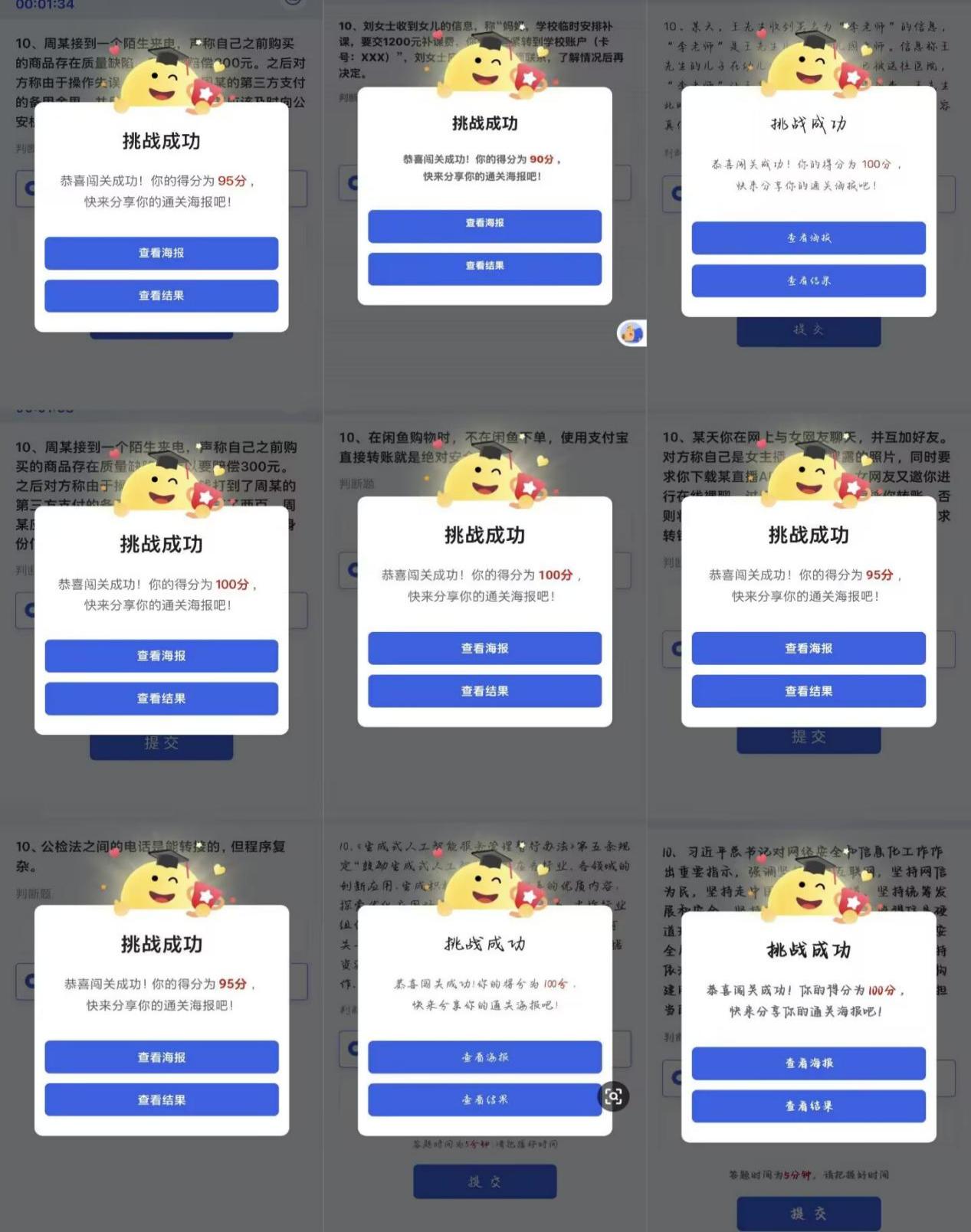 以赛促学,竞技闯关让青春赋能安全。信息安全小组以“守护青春,网络有你”全国大学生网络安全知识闯关网上答题,为青年群体搭建起网络安全知识学习与实践的优质平台。同学们纷纷表示,通过竞技答题掌握了很多网络安全相关新知识,有效实现了"以赛促学、以学促用"的目标。