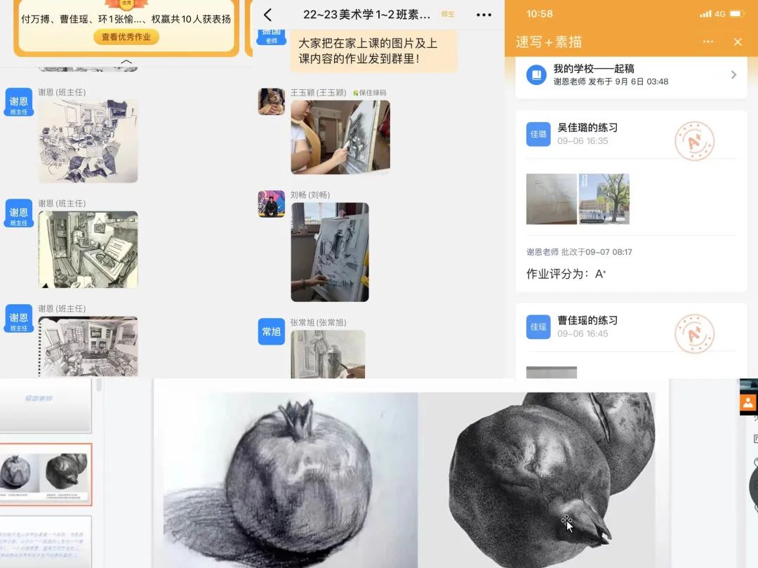 聚云端,守初心,在特殊时期,任课教师们教学热情不减,对教学依旧高标准、严要求,力争做好课程展示直观、教学重点突出、问题解决高效、课内深度互动等要求,让学生做到“宅”而不“荒”。根据艺术学部各专业课程特点,任课教师精心设计线上教学方案,音乐学、舞蹈学专业教师通过视频连线、录制视频等方式进行教学示范与指导,通过学生的回课视频掌握学生学习情况,并针对共性与个性的问题给予每个学生反馈。美术、书法、动画、设计专业教师通过分享屏幕演示、上传视频示范、视频连线指导、学生作业讲评等方式组织教学。围绕培养方案,紧贴专业特点,确保学生扎实掌握知识技能,学部线上教学井然有序。