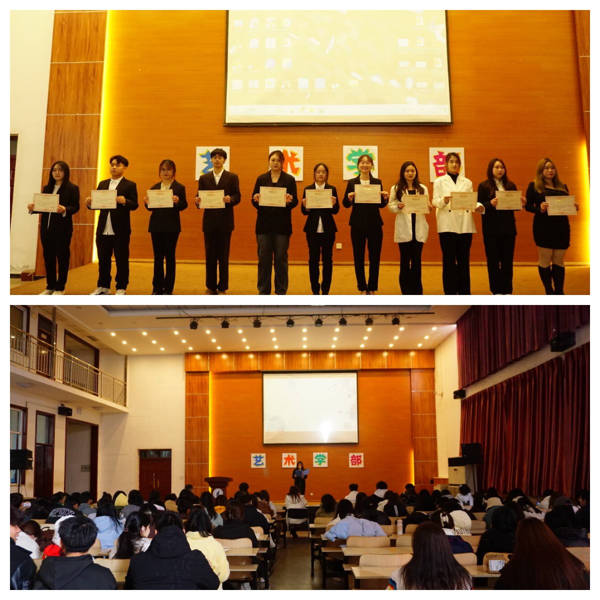 11月16日,艺术学部在大学生活动中心举办“漫漫复兴路,艺艺升光辉“2023年暑期社会实践展示会。展示会邀请各学部学生会骨干作为评委,艺术学部23级新生做观众。