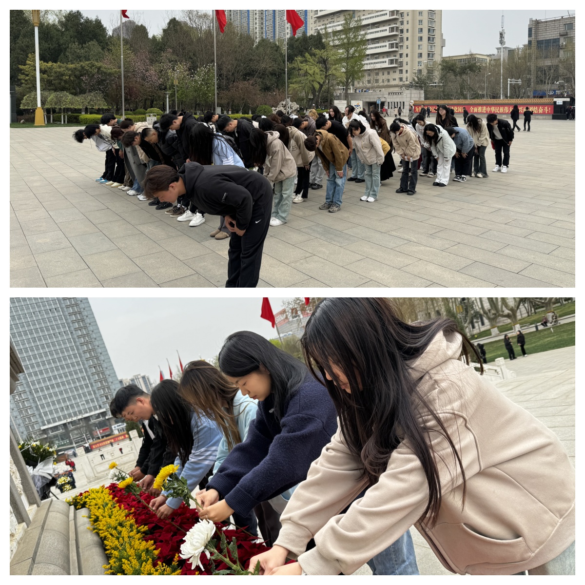 活动在庄严肃穆的氛围中拉开帷幕。纪念碑前、国旗下学生代表首先发言,回顾了烈士们的光辉历程,强调了烈士陵园的历史意义和文化价值,表达了作为青年一代要铭记历史、缅怀先烈,传承和发扬革命精神。接着,同学们列好队伍集体向烈士墓碑鞠躬、默哀。最后学生代表们手持鲜花,有序走向烈士墓,缓缓而行,步履庄重,依次献上鲜花,并默哀致敬。这一刻,整个陵园都沉浸在庄重肃穆的氛围中,这一刻,时光静止,青年一代与烈士们进行着跨时空的交流。青年的血脉在沸腾,深刻地感受到了烈士们的英勇无畏和奉献精神。青年的心中在呐喊,要接过英烈们手中的旗帜,代代传承,生生不息。