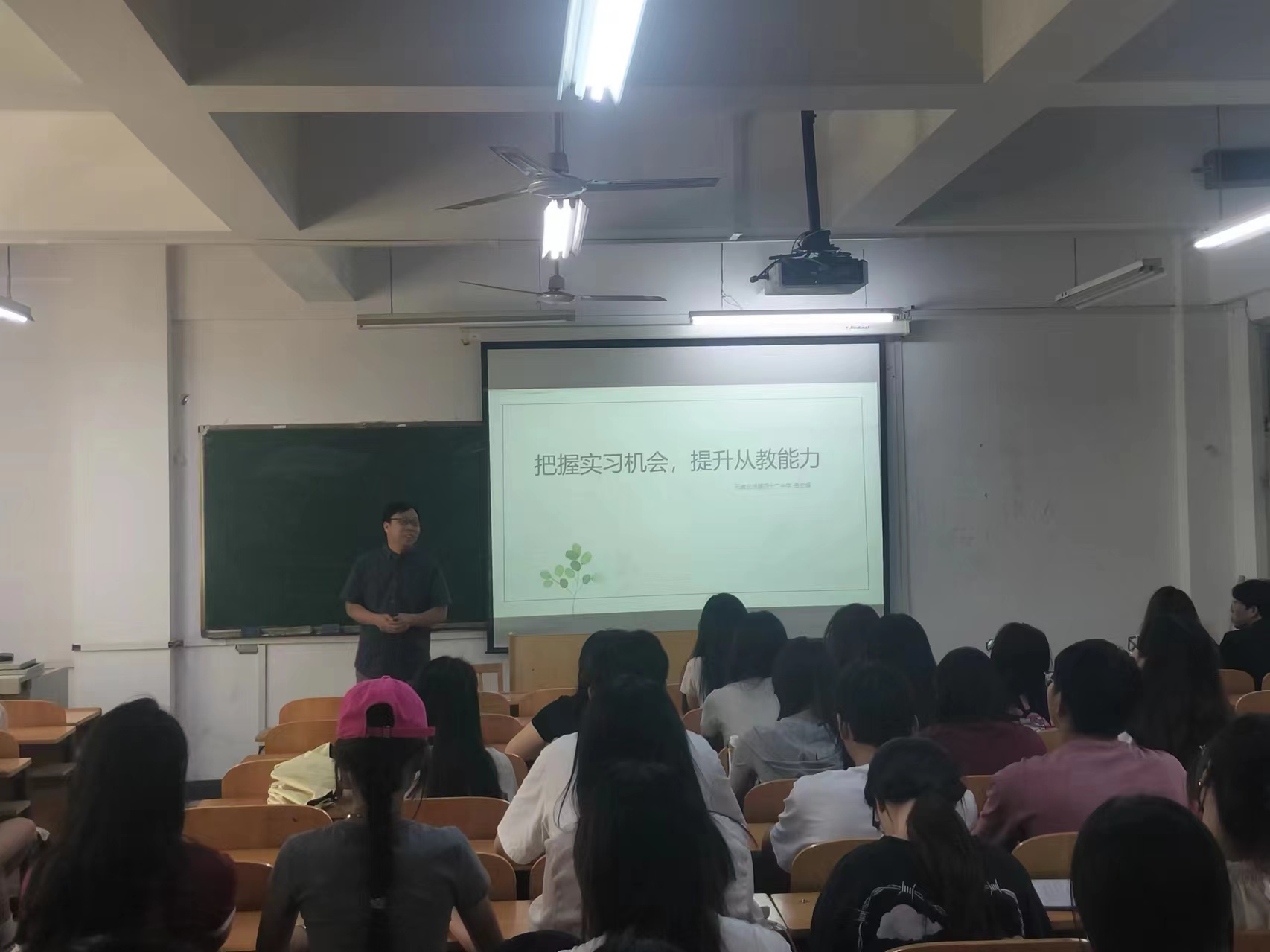 为提高艺术师范生培养质量,更好地发挥顶岗实习培养作用,5月30日,艺术学部邀请42中美术教师岳立辉老师为2022级美术学专业学生开展题为《把握实习机会,提升从教能力》的专题讲座。本次讲座旨在帮助即将步入实习岗位的学子们更好地适应工作环境,提升实践能力,为未来的职业生涯奠定坚实础。