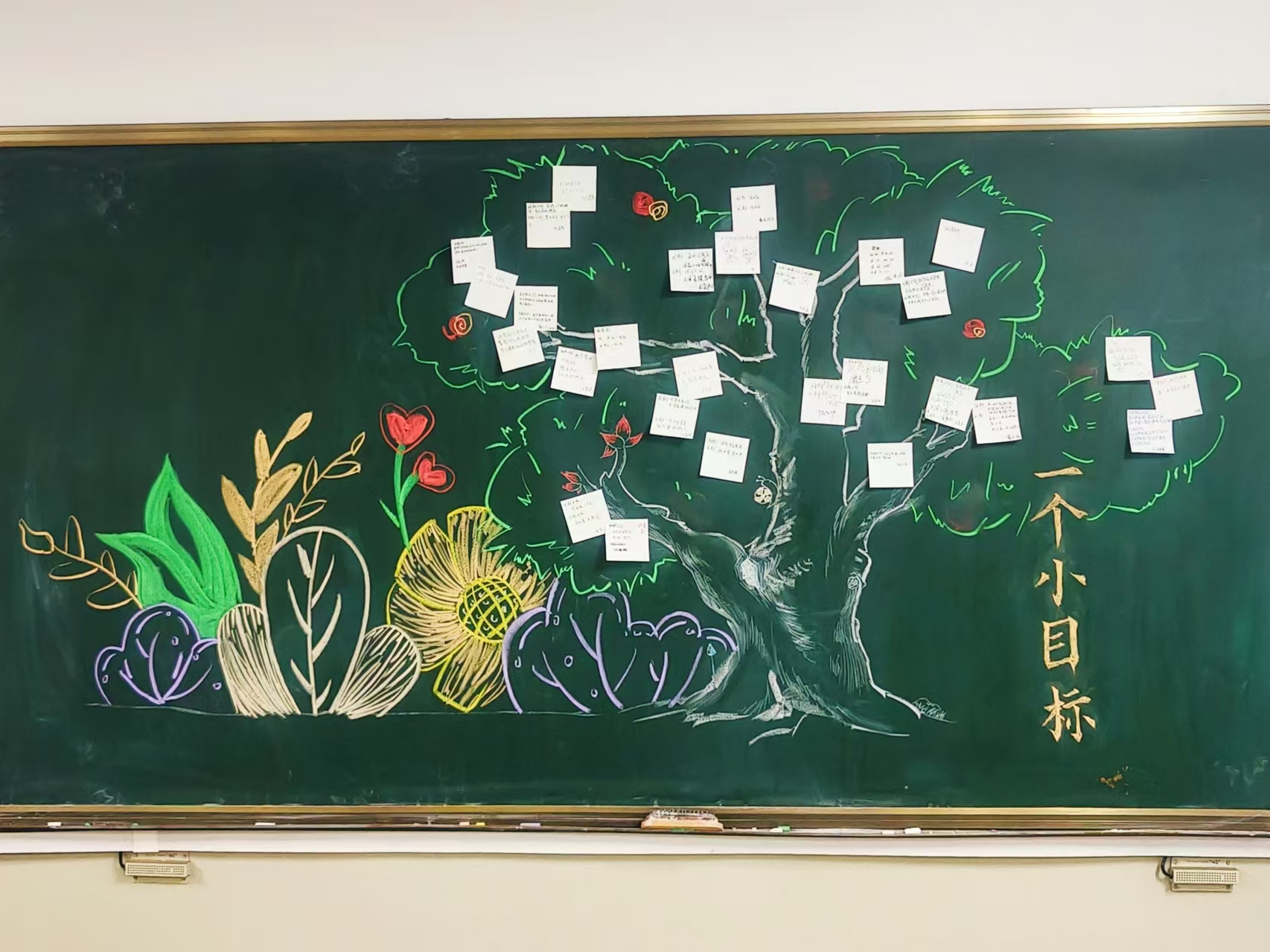 本次活动在班委的精心策划与热情带动下顺利展开。他们提前准备好所需材料,做好分工,向同学们详细介绍了活动意义与流程。同学们满怀激情,纷纷将自己的短期与长期目标书写在便利贴上,内容既简洁又实际,从“完成好手上的每一张画”到“用好每一根炭笔”,无不透露出大家对学业进步的真诚追求与对美好未来的无限憧憬。