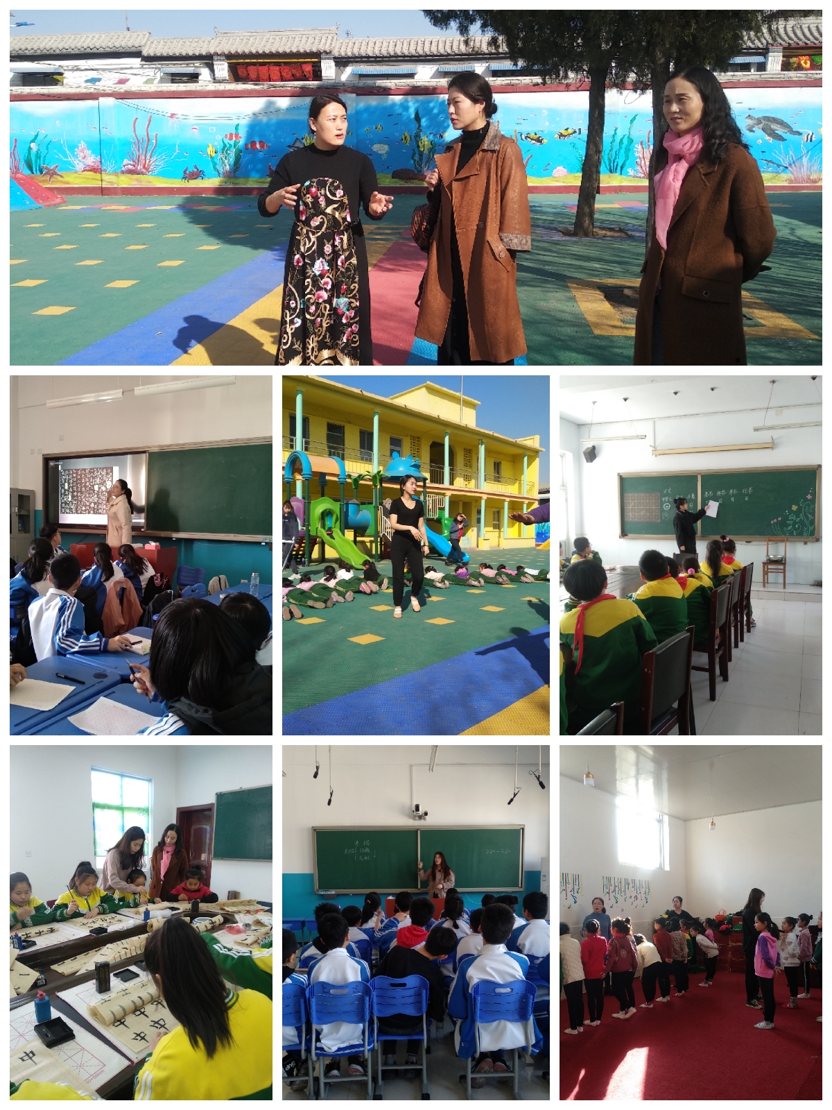 师生一行来到丘头镇中学、靳庄小学、南乐乡小学,分别为三所学校的中、小学生开展书法、美术、舞蹈兴趣课堂教学。活动中,学生们表现出来的专业水准、奉献精神和责任担当受到了当地领导、老师的一致好评。
